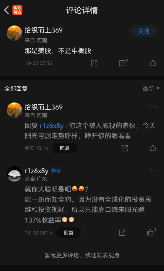 温馨提示: 1.根据《证券法》规定,禁止编造、传播虚假信息或者误导性信息,扰乱证券市场;2.用户在本社区发表的所有资料、言论等仅代表个人观点,与本网站立场无关,不对您构成任何投资建议。用户应基于自己的独立判断,自行决定证券投资并承担相应风险。《东方财富社区管理规定》