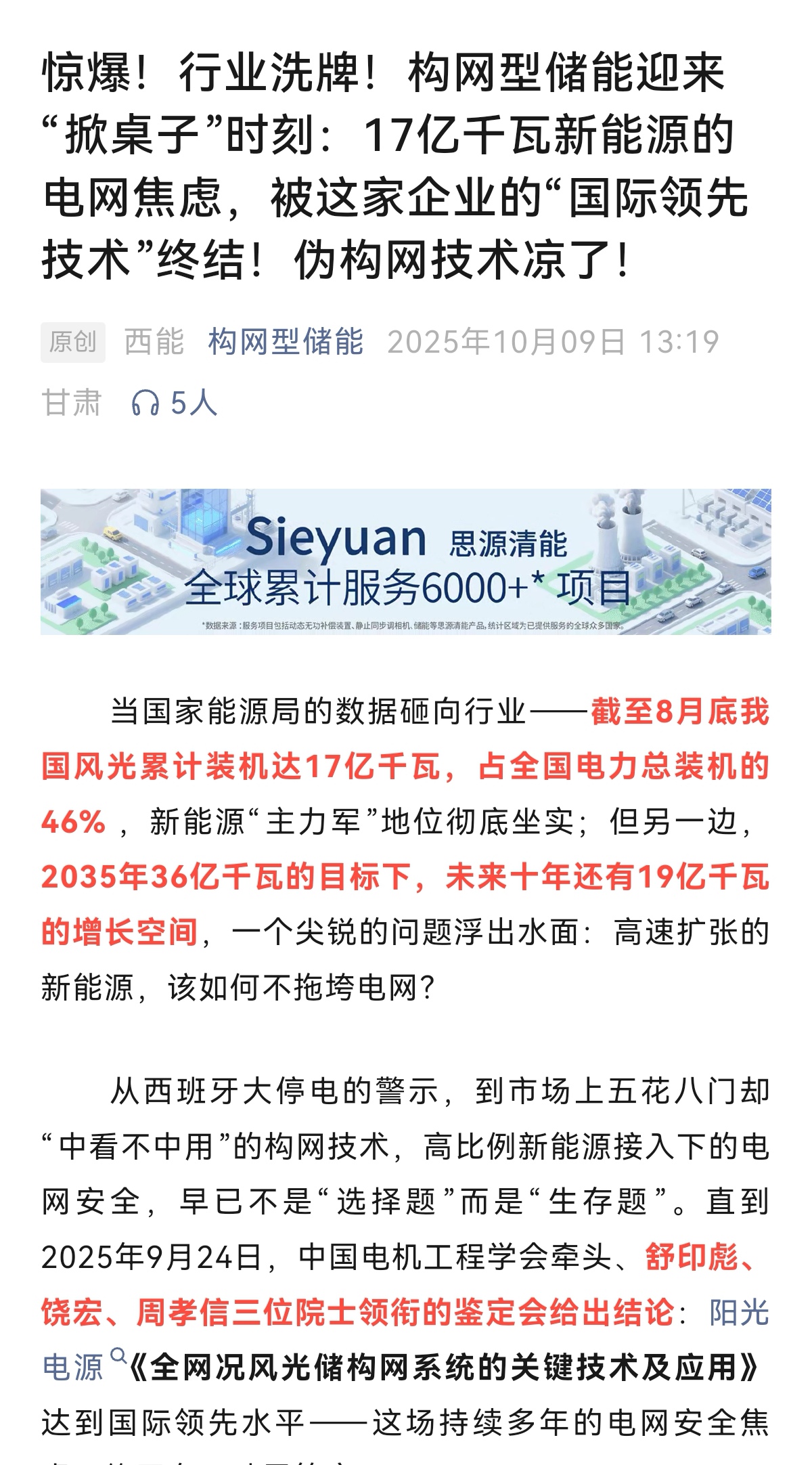 惊爆!行业洗牌!构网型储能迎来“掀桌子”时刻:17亿千瓦新能源的电网焦虑,被这家企业的“国际领先技术”终结!伪构网技术凉了!