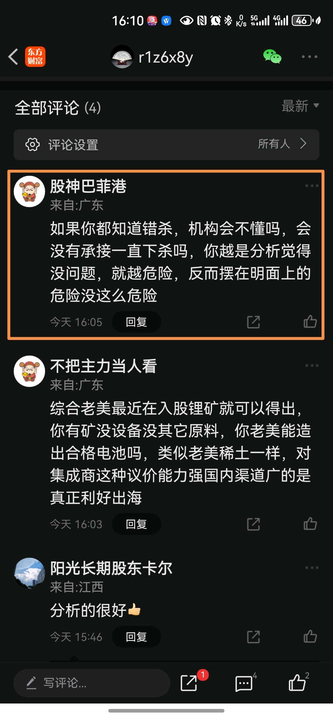 温馨提示: 1.根据《证券法》规定,禁止编造、传播虚假信息或者误导性信息,扰乱证券市场;2.用户在本社区发表的所有资料、言论等仅代表个人观点,与本网站立场无关,不对您构成任何投资建议。用户应基于自己的独立判断,自行决定证券投资并承担相应风险。《东方财富社区管理规定》