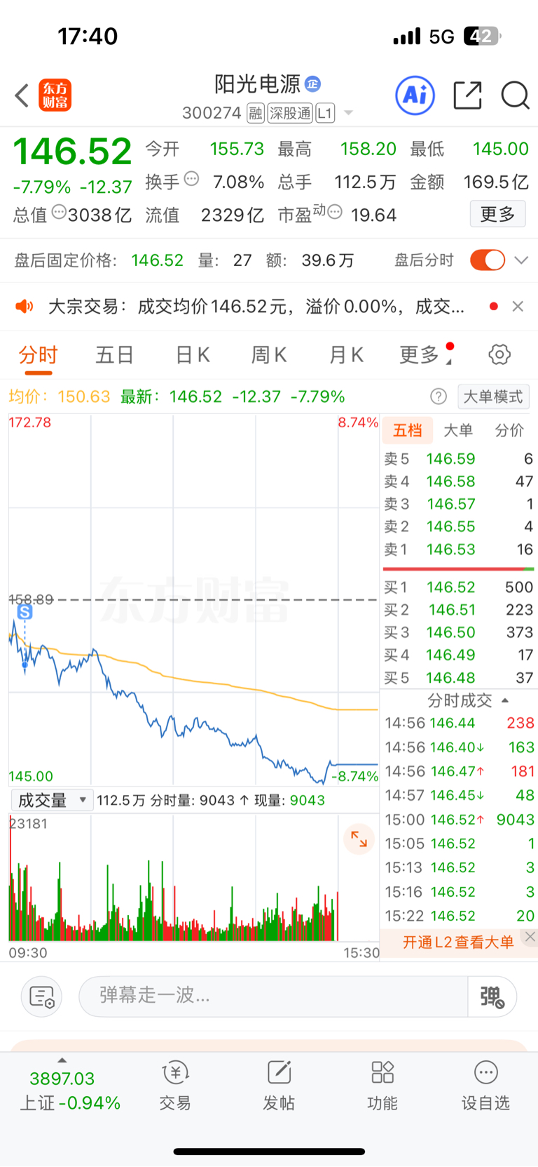 $阳光电源(SZ300274)$ 玛德亏5万,好在卖的早
