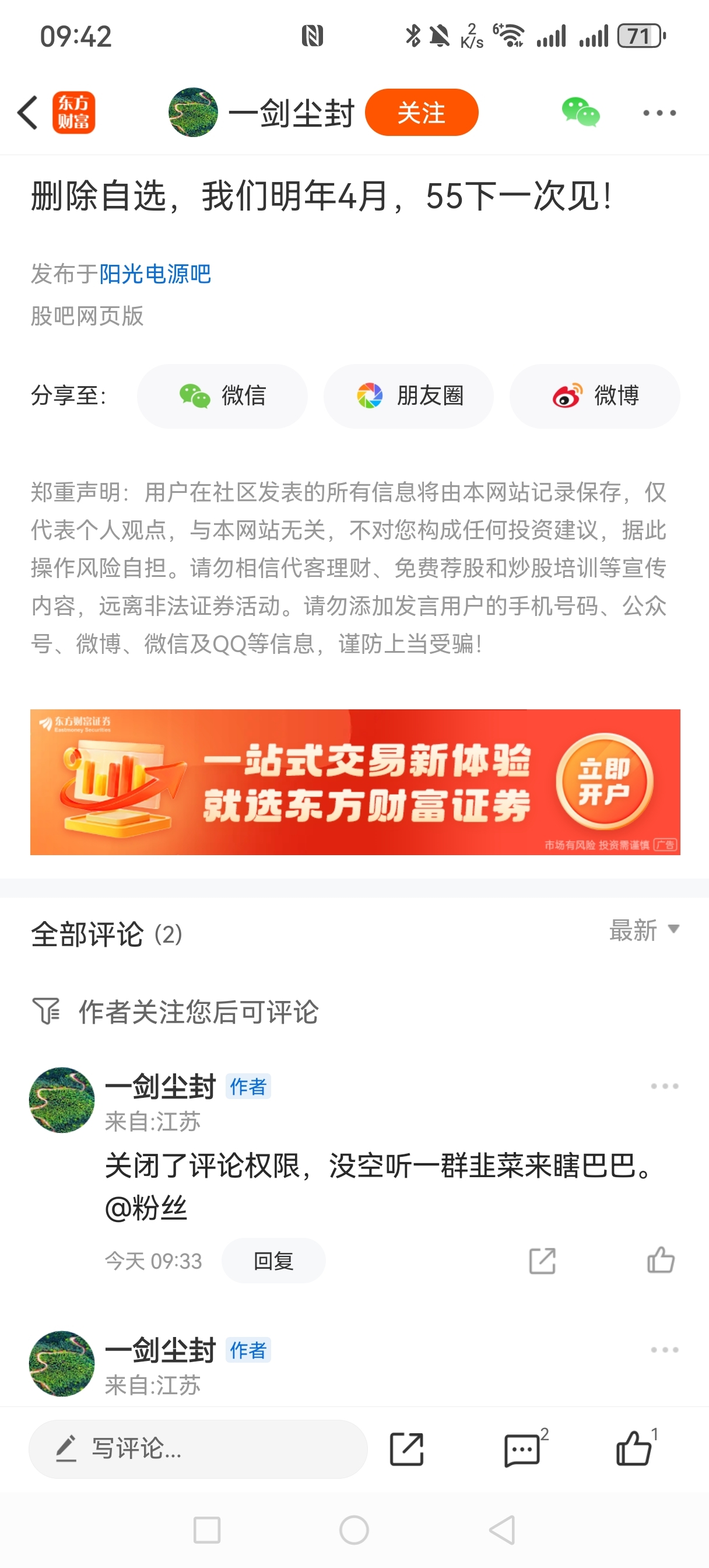 $阳光电源(SZ300274)$ 卖了就赶紧滚,在这里叽叽喳喳,还关闭评论,怕被喷?怕被骂??那你狗叫什么??还明年55见,
