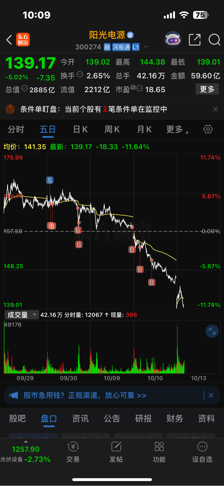 $阳光电源(SZ300274)$ 没钱只有躺在不动了