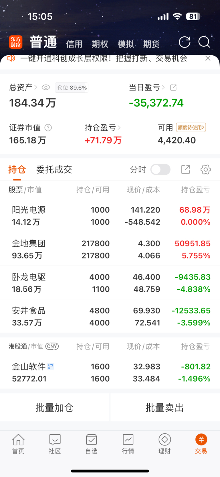 按规则卖了点阳光电源。买了点金山软件。做个短线。市场波动越来越大,需要越来越谨慎