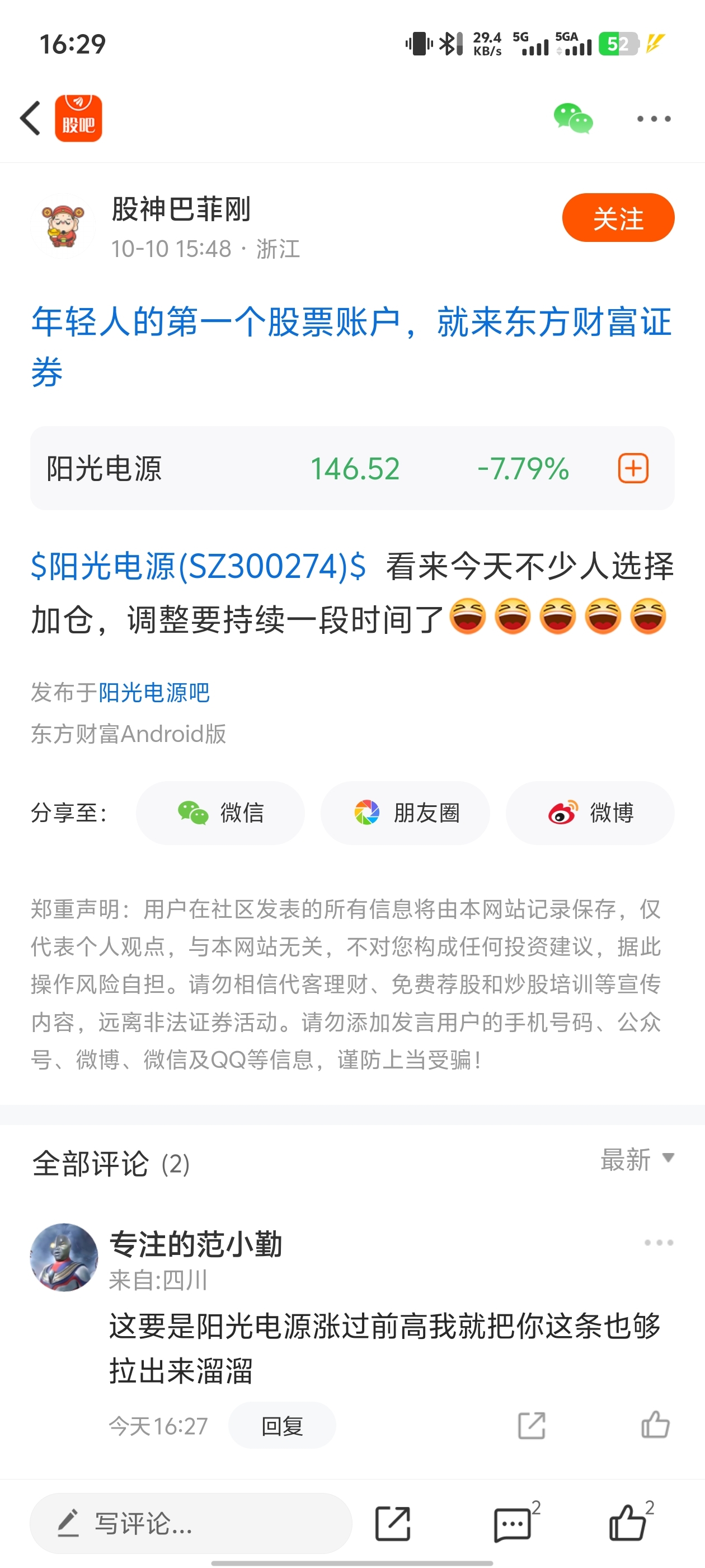 温馨提示: 1.根据《证券法》规定,禁止编造、传播虚假信息或者误导性信息,扰乱证券市场;2.用户在本社区发表的所有资料、言论等仅代表个人观点,与本网站立场无关,不对您构成任何投资建议。用户应基于自己的独立判断,自行决定证券投资并承担相应风险。《东方财富社区管理规定》