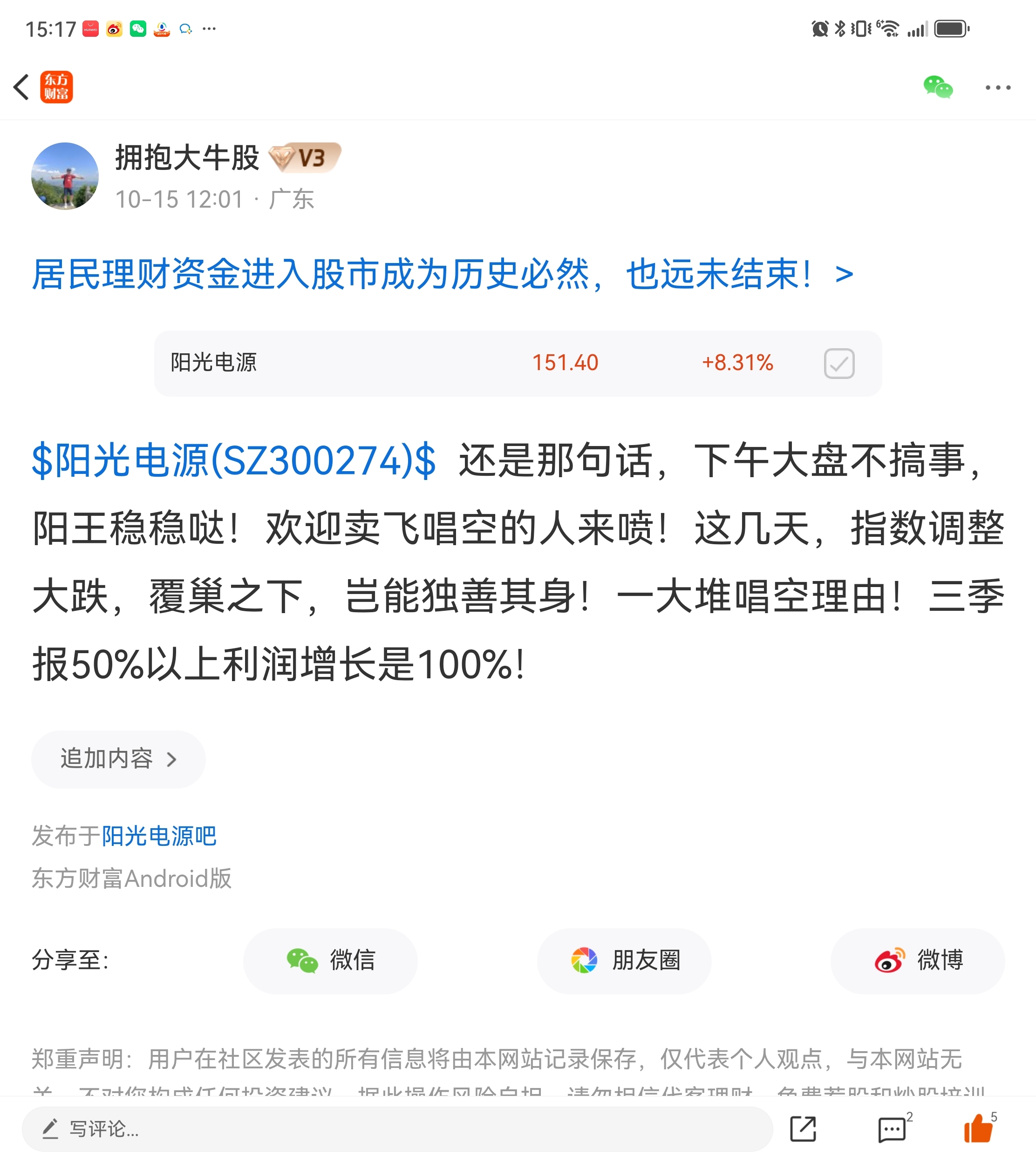 $阳光电源(SZ300274)$ 今天中午发的,只要大盘没事,阳王就是最靓的仔!中午发了以后居然没人喷我,本月目标价还是冲200元。欢迎大家来喷