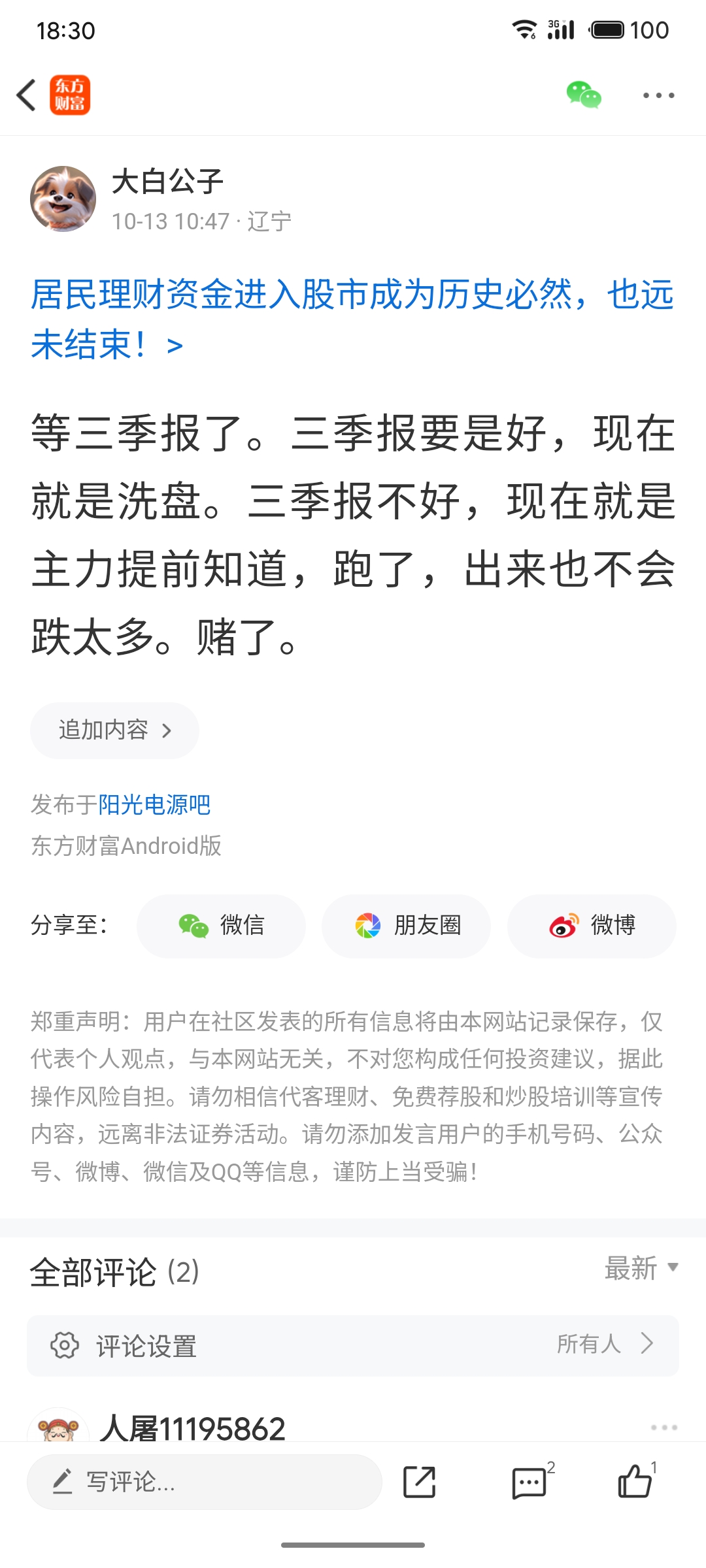 温馨提示: 1.根据《证券法》规定,禁止编造、传播虚假信息或者误导性信息,扰乱证券市场;2.用户在本社区发表的所有资料、言论等仅代表个人观点,与本网站立场无关,不对您构成任何投资建议。用户应基于自己的独立判断,自行决定证券投资并承担相应风险。《东方财富社区管理规定》