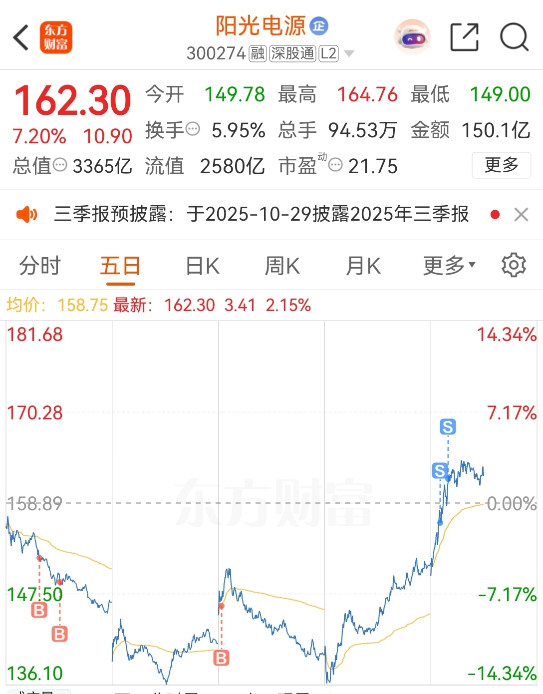 $阳光电源(SZ300274)$ 没有买在最低点,没有卖在最高点,但不妨碍赚钱啊