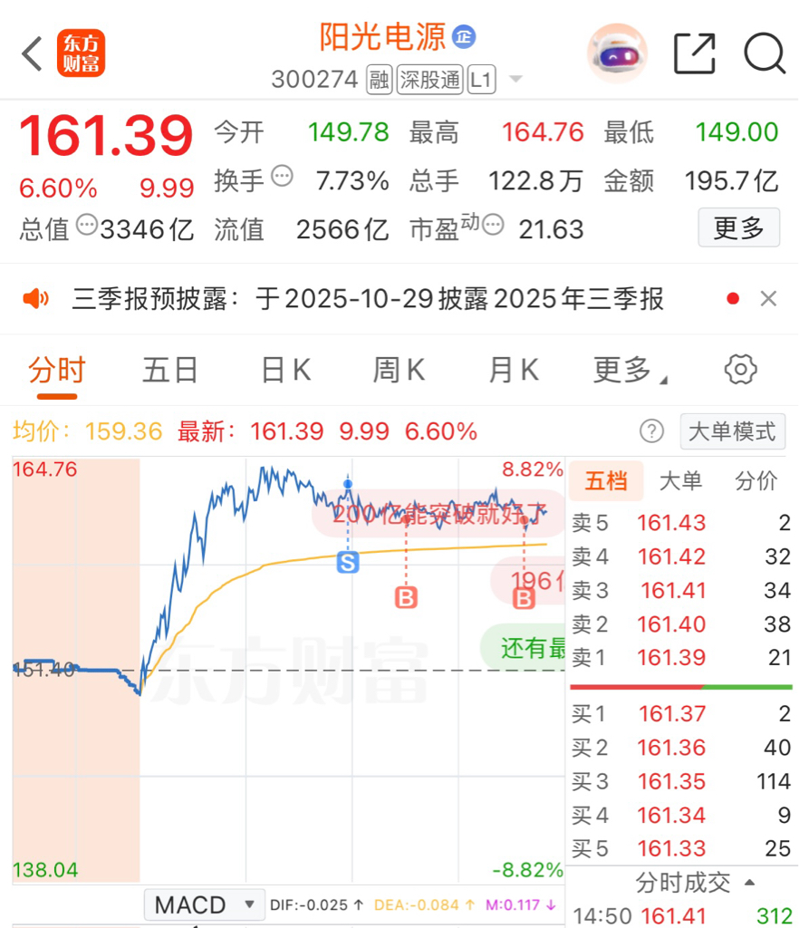 $阳光电源(SZ300274)$ 好悬,差点儿t飞