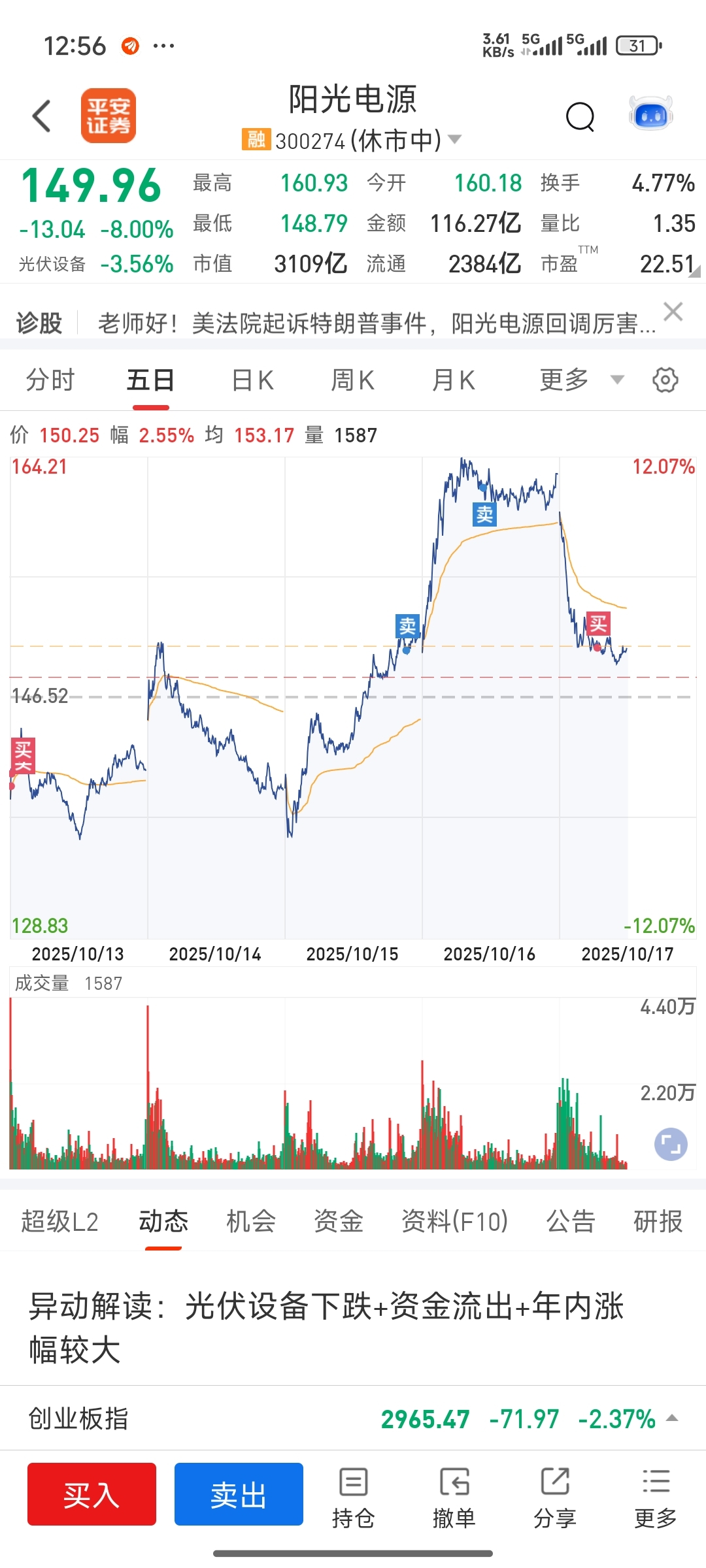 $阳光电源(SZ300274)$ 我又回来了