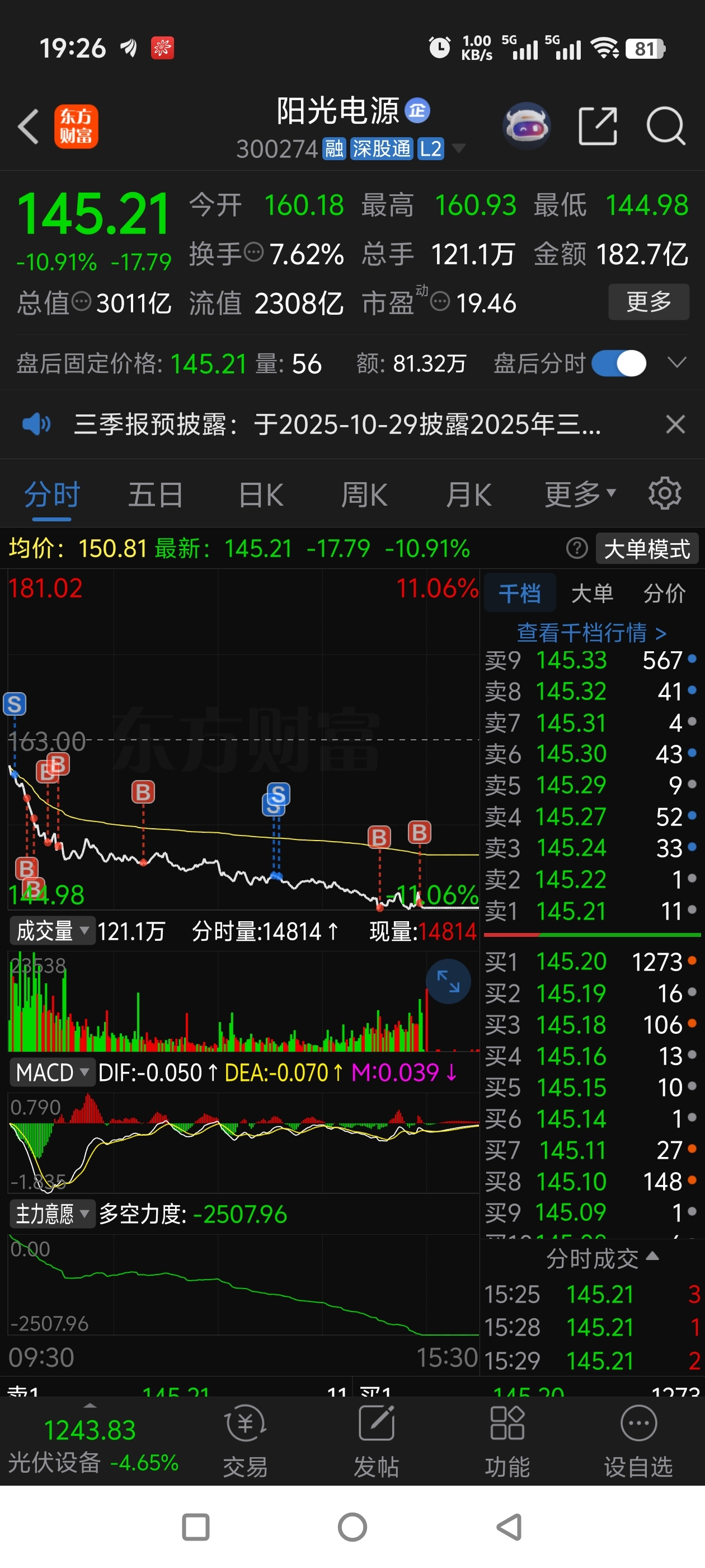 $阳光电源(SZ300274)$ 两天全部还给砸盘王,今天全部梭哈进去,