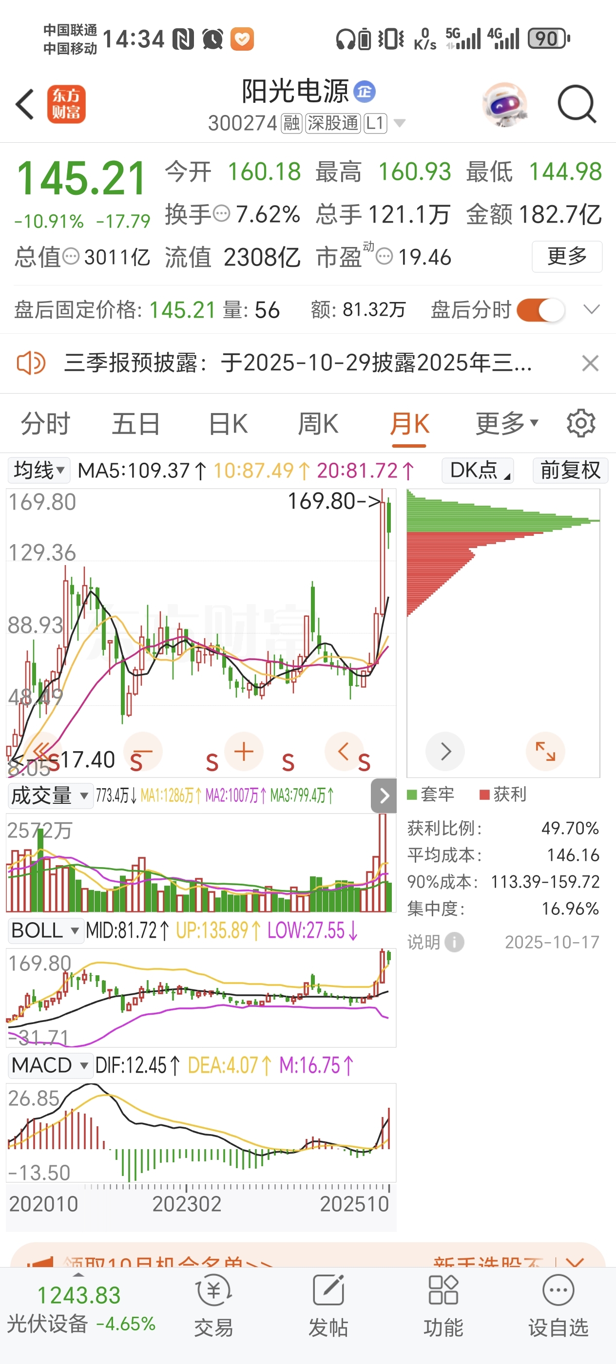 $阳光电源(SZ300274)$ 调整起来也是好凶的,不可盲目做多