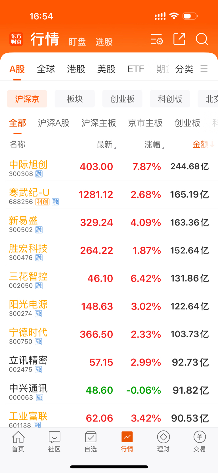 $阳光电源(SZ300274)$ 成交额榜十大哥们,电源涨停需要250个亿!