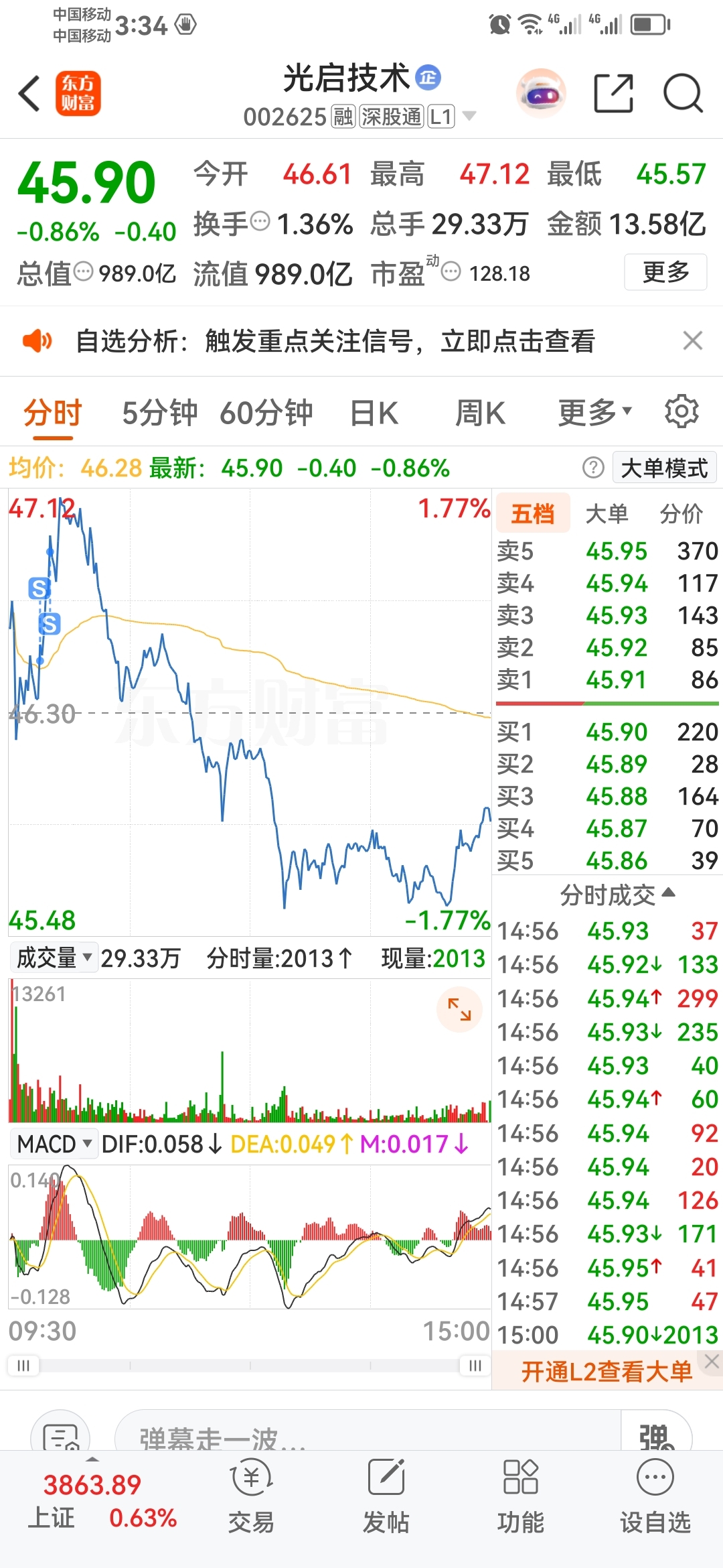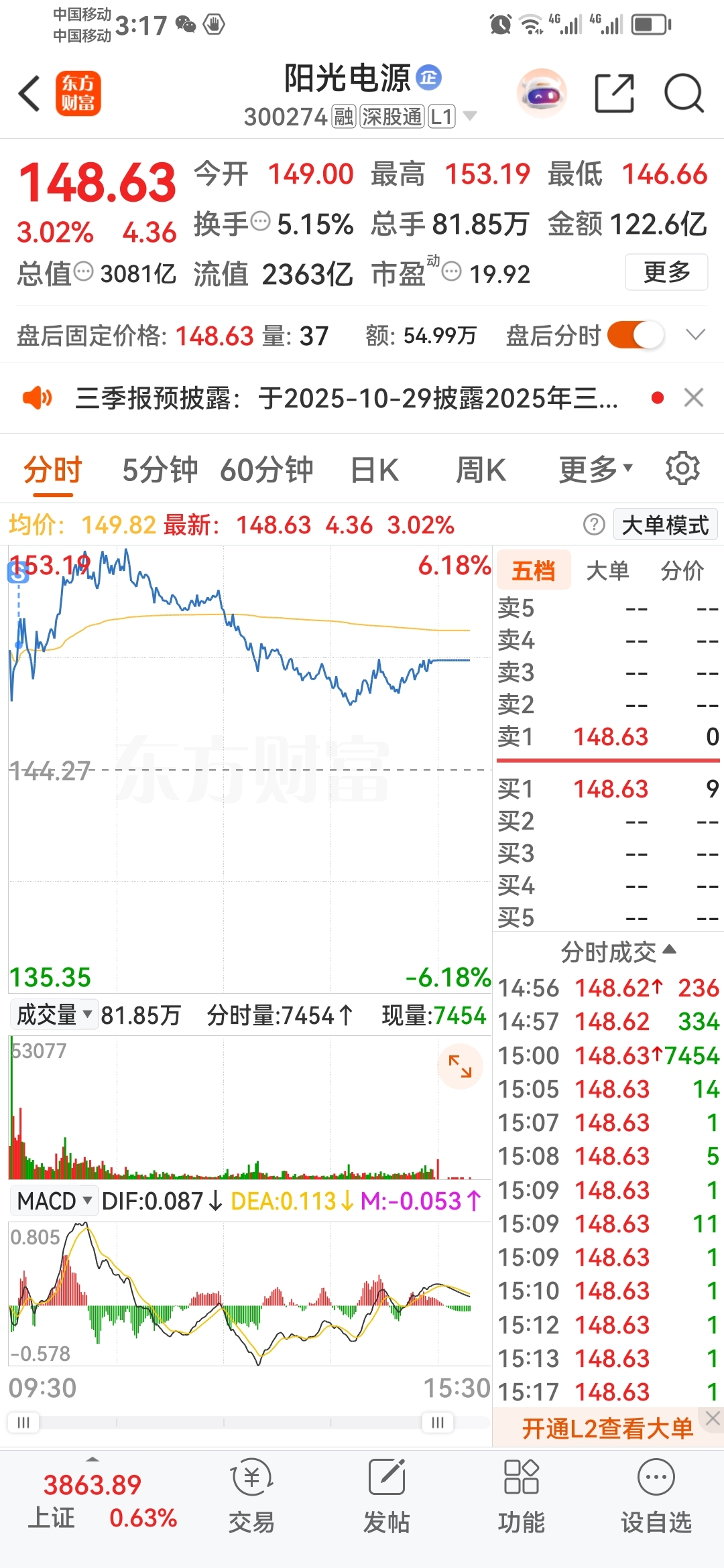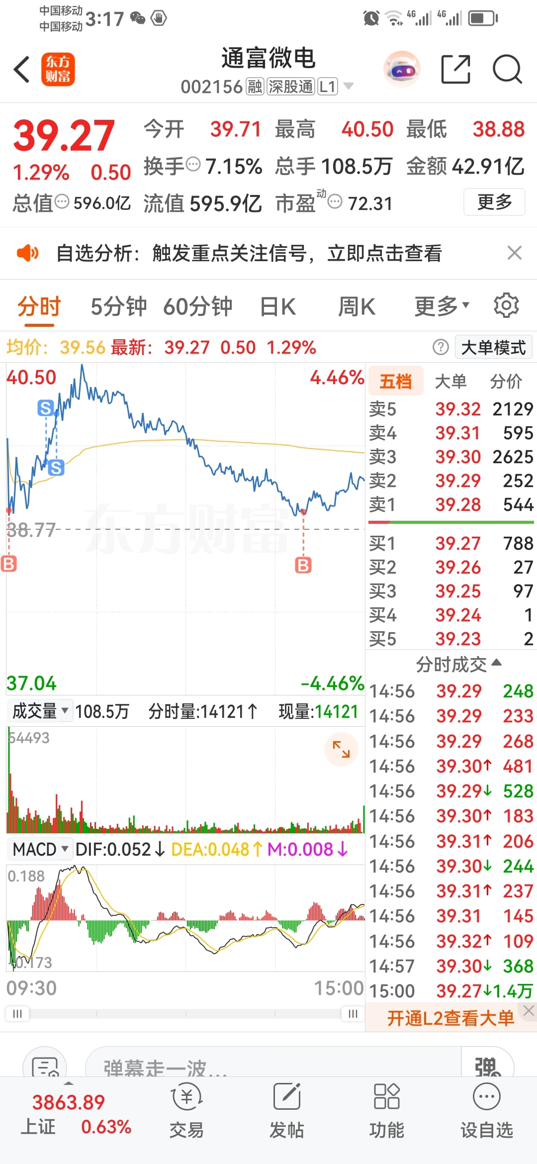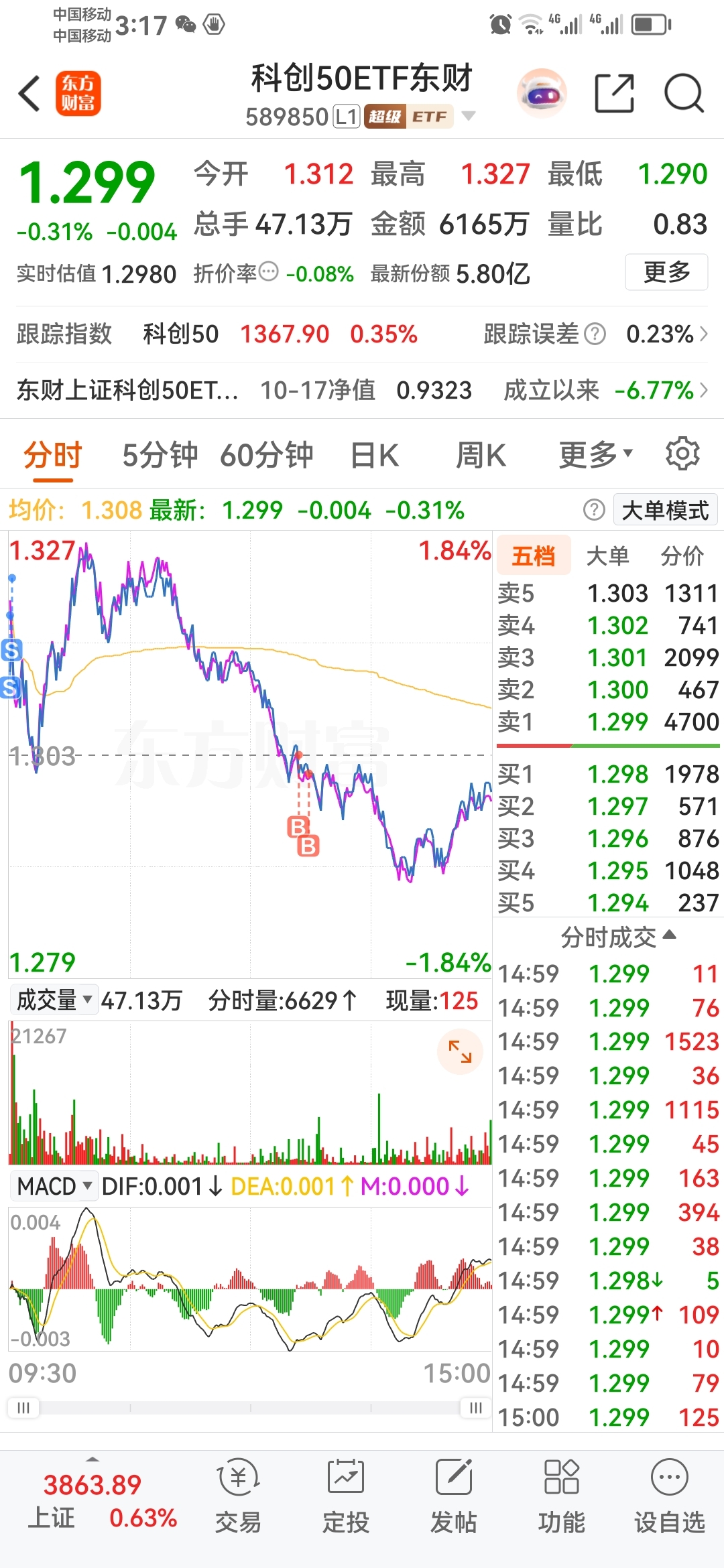 早盘涨得不错,可惜后继乏力,趁反弹减点仓,毕竟上周五跌得太猛,短期指标也有点走坏,后面等指标修复了再加回,还是相信大A,同时也相信没有只涨不调的股市$阳光电源(SZ300274)$ $通富微电(SZ002156)$ $科创50ETF东财(SH589850)$