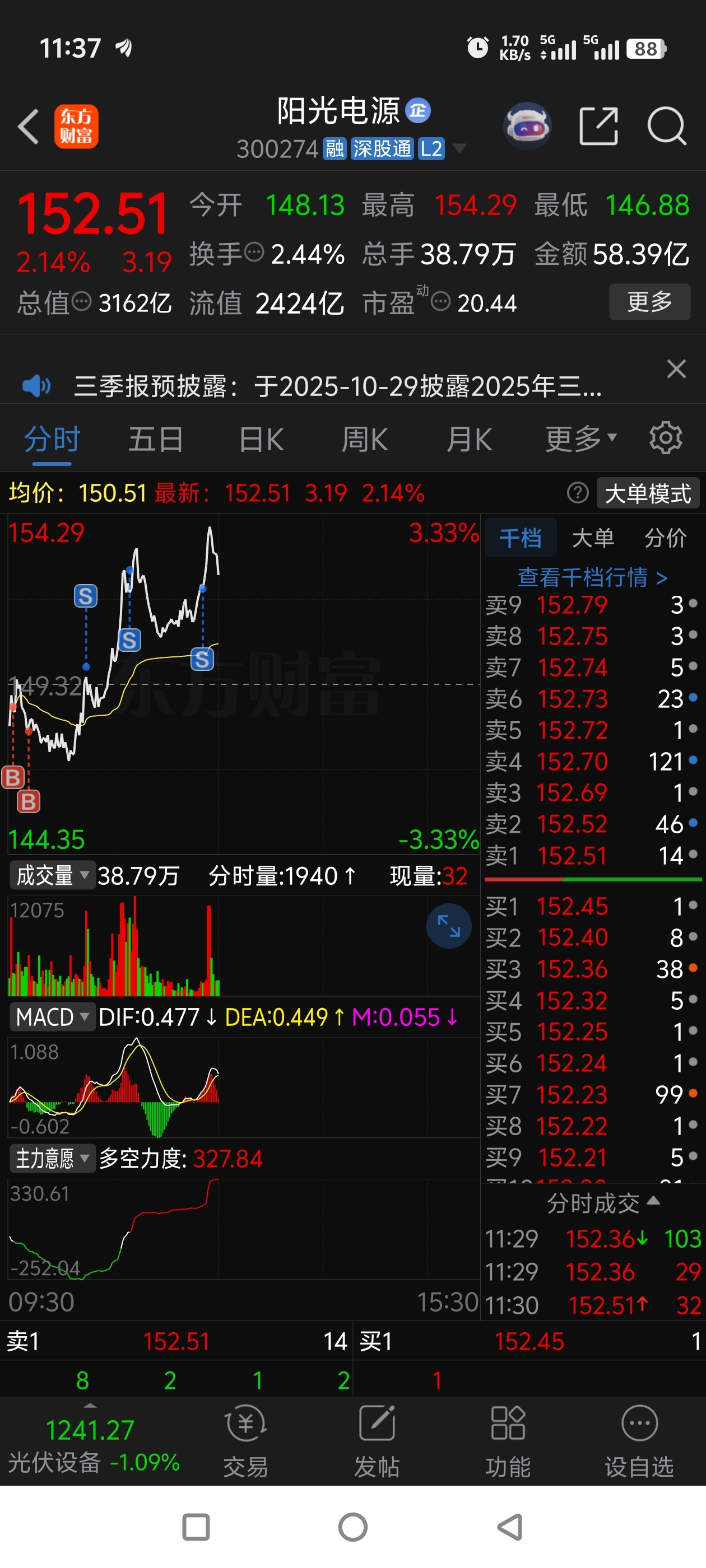 $阳光电源(SZ300274)$ 大盘不好很难上去,先踢掉