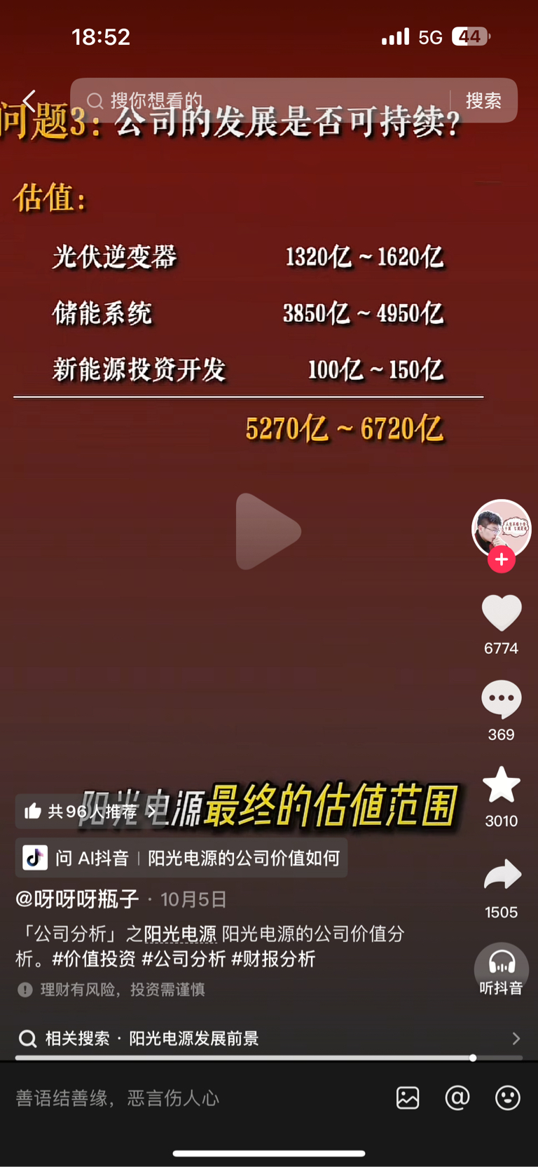 $阳光电源(SZ300274)$ 市值6000亿才是你的合理价格?