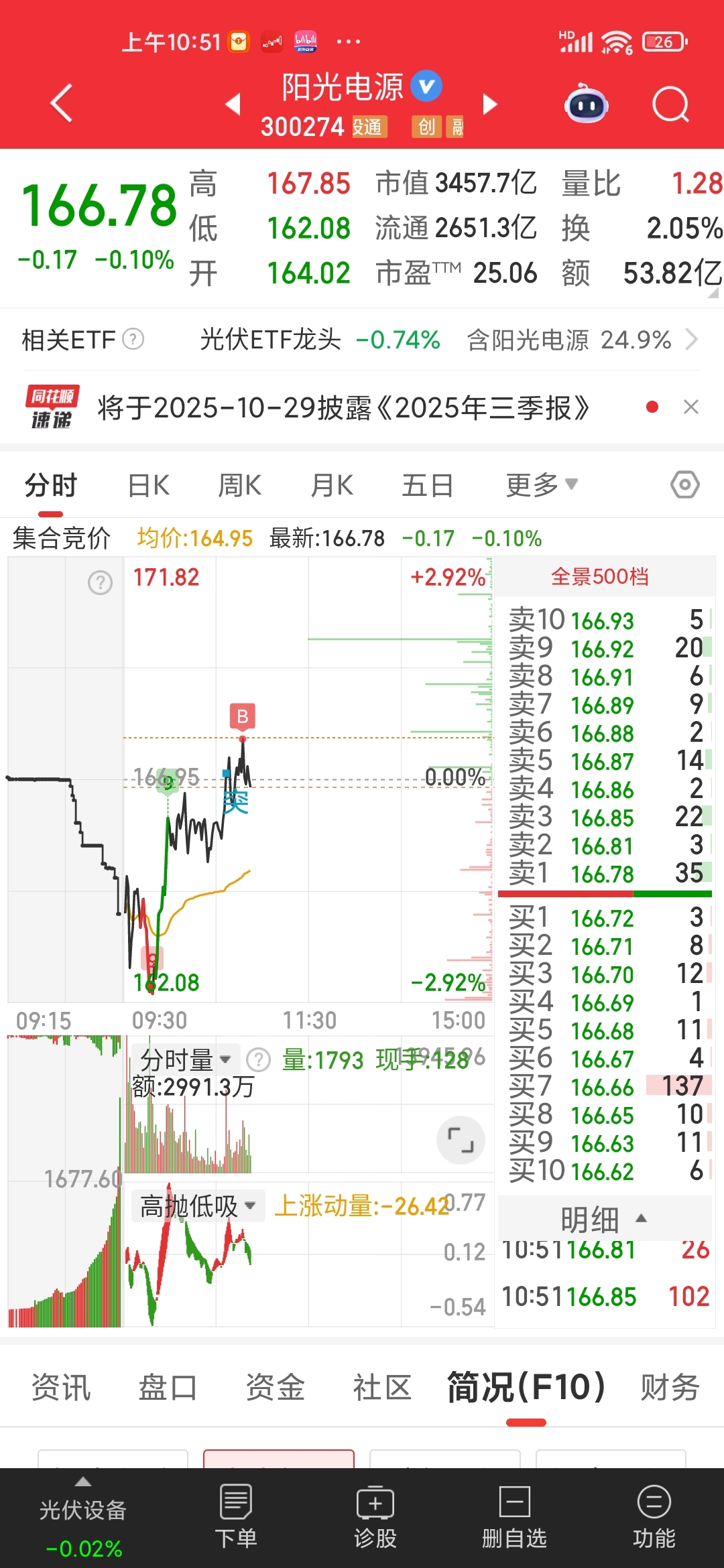 $阳光电源(SZ300274)$ 下次买票尾盘再买。我一买资金就框框卖。