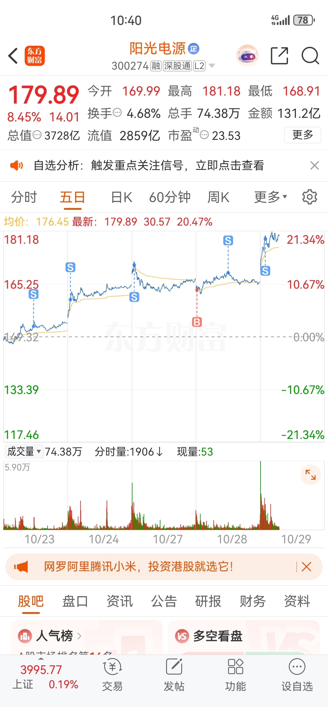 $阳光电源(SZ300274)$ 如果一次是一手,你能算出来是赚了还是亏了吗?还有四手实在舍不得卖了