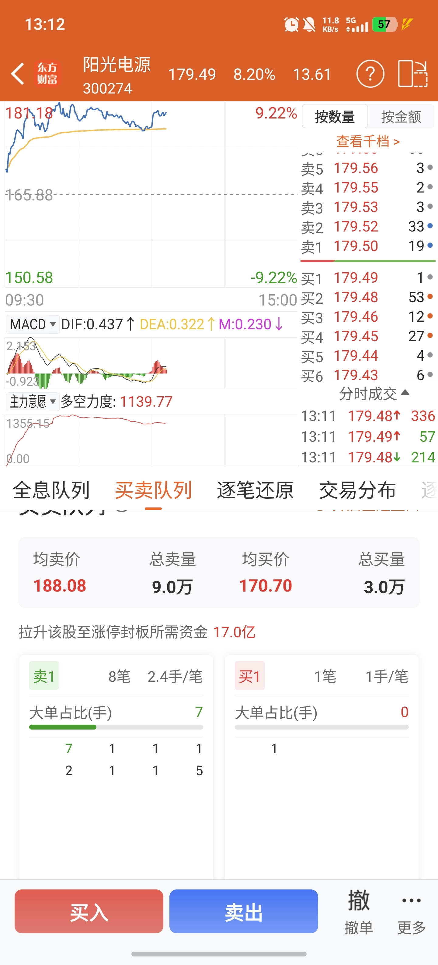 $阳光电源(SZ300274)$ 涨停就别想了还要20个亿才可能涨停呢,今天没北向不太可能
