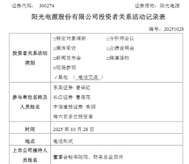 上证报中国证券网讯(记者王玉晴)10月29日盘前,阳光电源披露电话会纪要。600余位投资者在公司三季报披露后参与了电话交流,话题主要聚焦储能和AIDC(智算中心)电源两大方面。