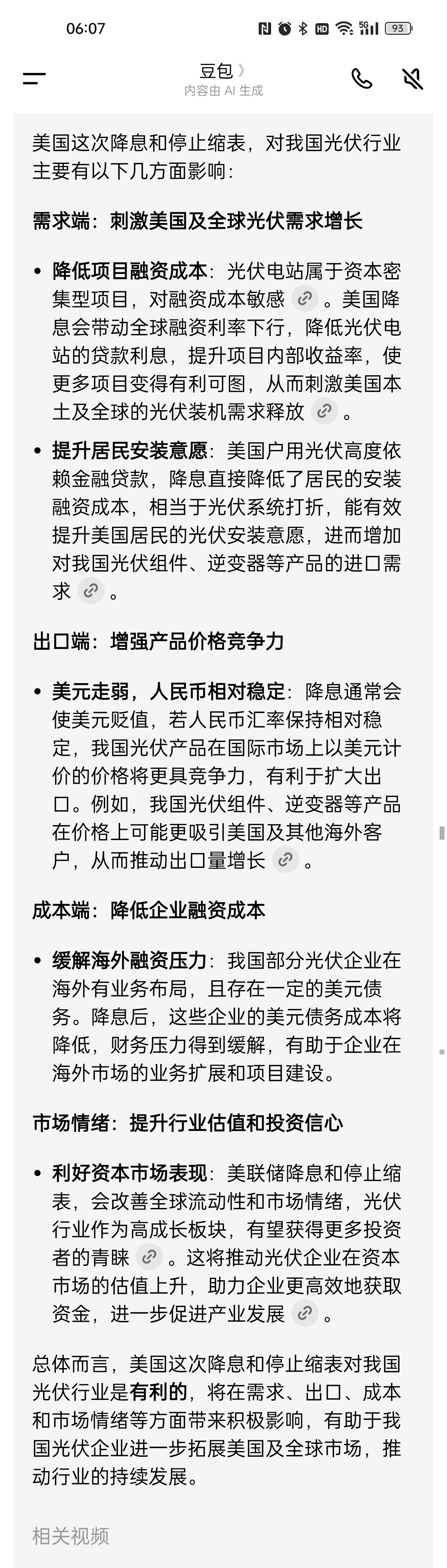 $阳光电源(SZ300274)$ 美国降息和停止缩表,咱也看不懂,反正豆包是这么说的