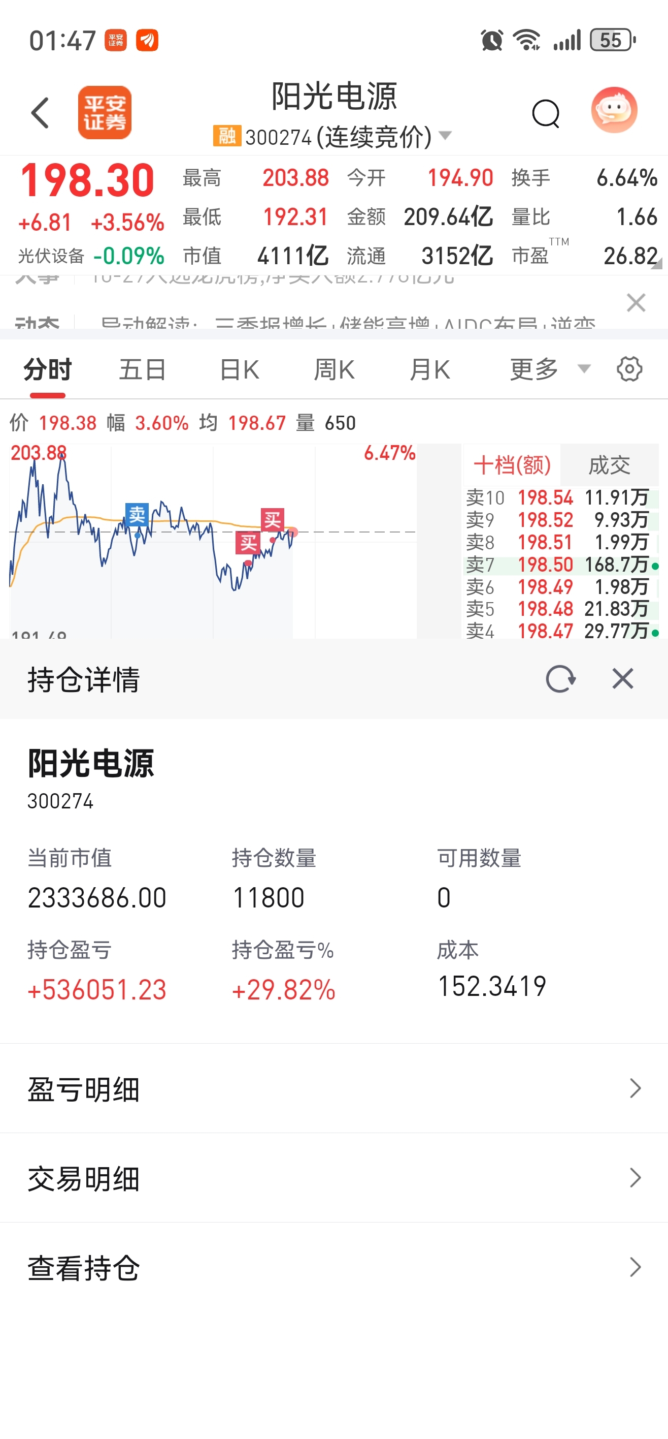 $阳光电源(SZ300274)$ 本来清仓走人了的,我看这197进来大哥建仓了,197也进来混卷儿了