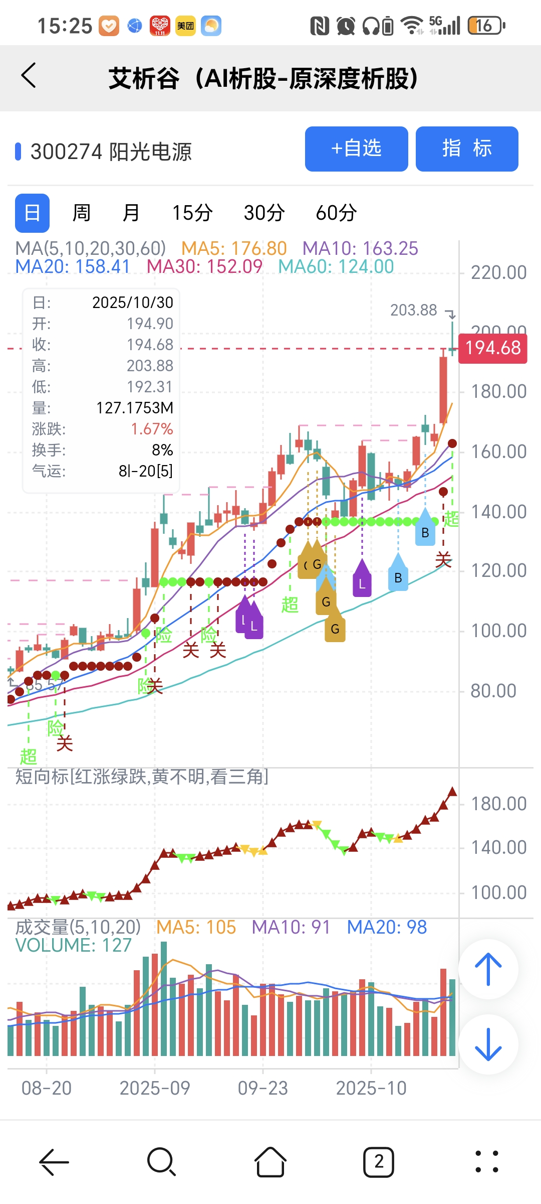 图中B、G、L 关注标记是对应AI选股模型当天下午2点多给出。