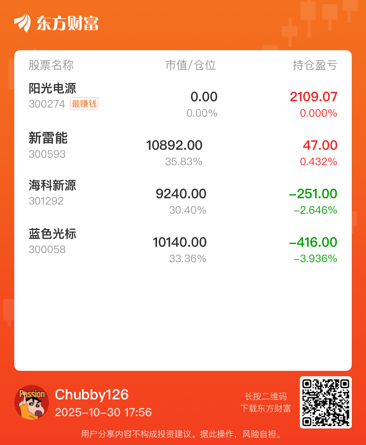 $新雷能(SZ300593)$ 新雷能 400股|盈利+0.43%