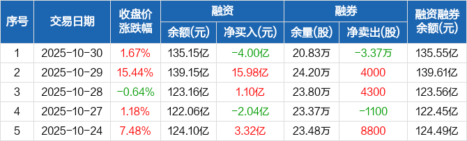 阳光电源:融资净偿还4亿元,两市排名第九(10-30)