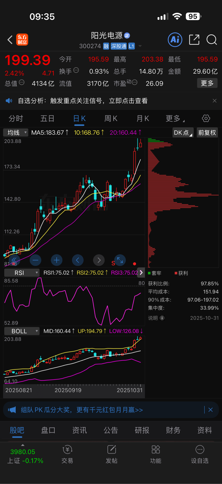 $阳光电源(SZ300274)$ 就这获利盘,各位道友悠着点,等回调再上