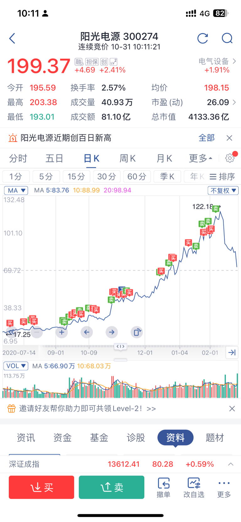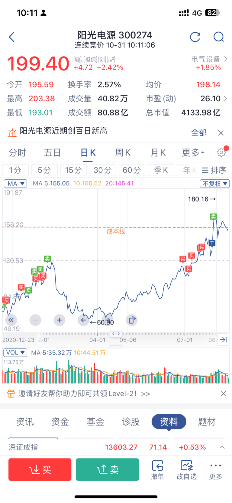 各项数据表明:阳光会继续高歌猛进!阳光电源也是我第一个翻了10倍的股,每次进来都