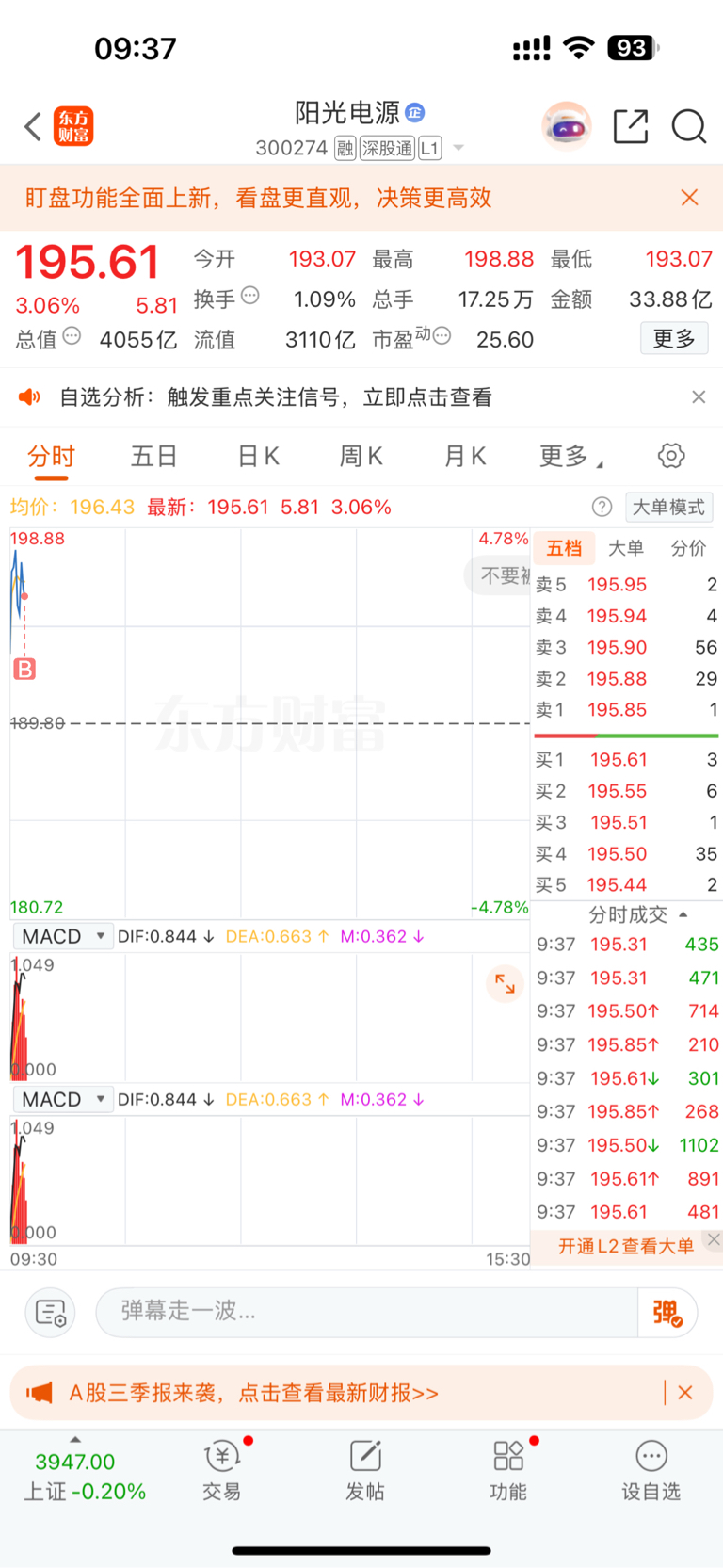 阳光电源再次介入$阳光电源(SZ300274)$ 主力流入强劲