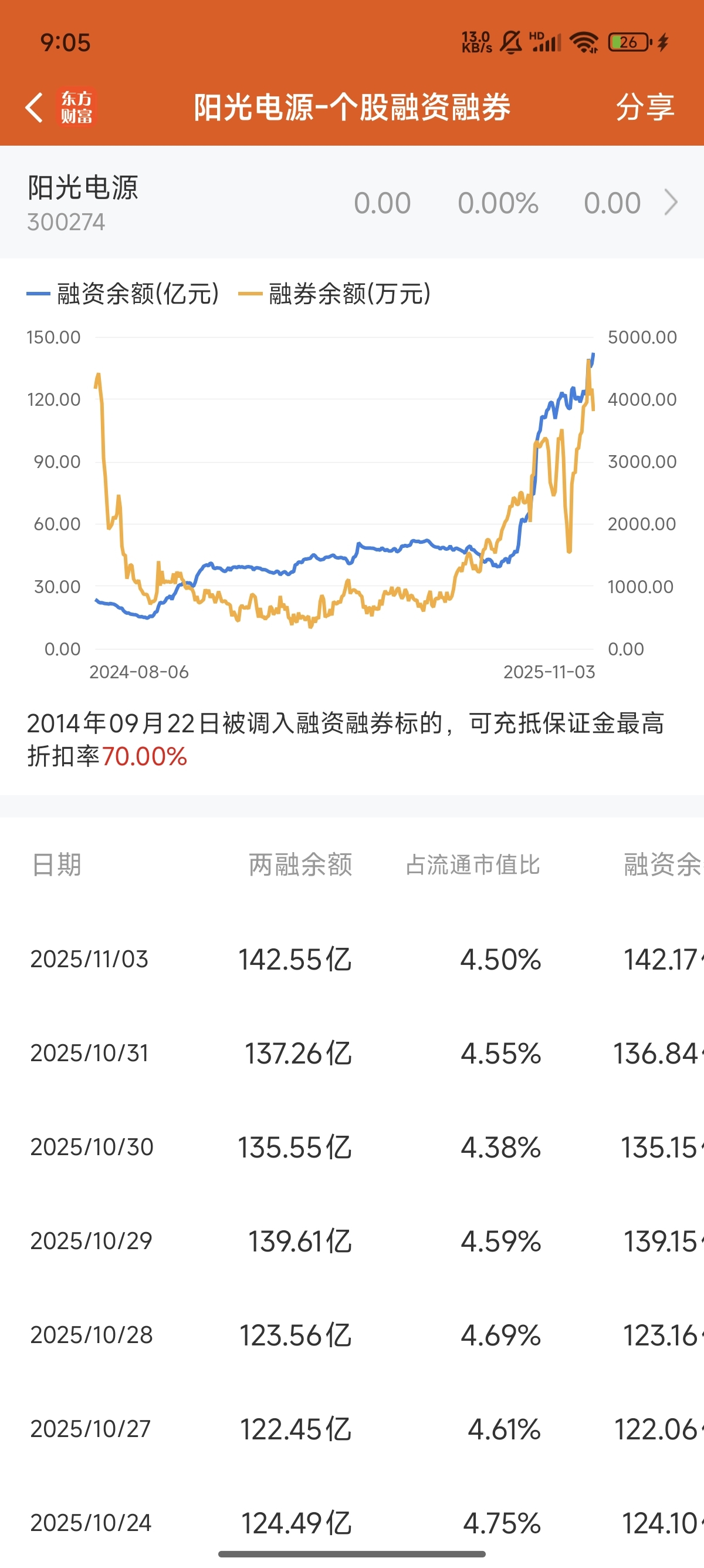 $阳光电源(SZ300274)$ 融资盘暴增,今日砸盘压力极大,各位小散需谨慎谨慎再谨慎,及时卖出为优中之选