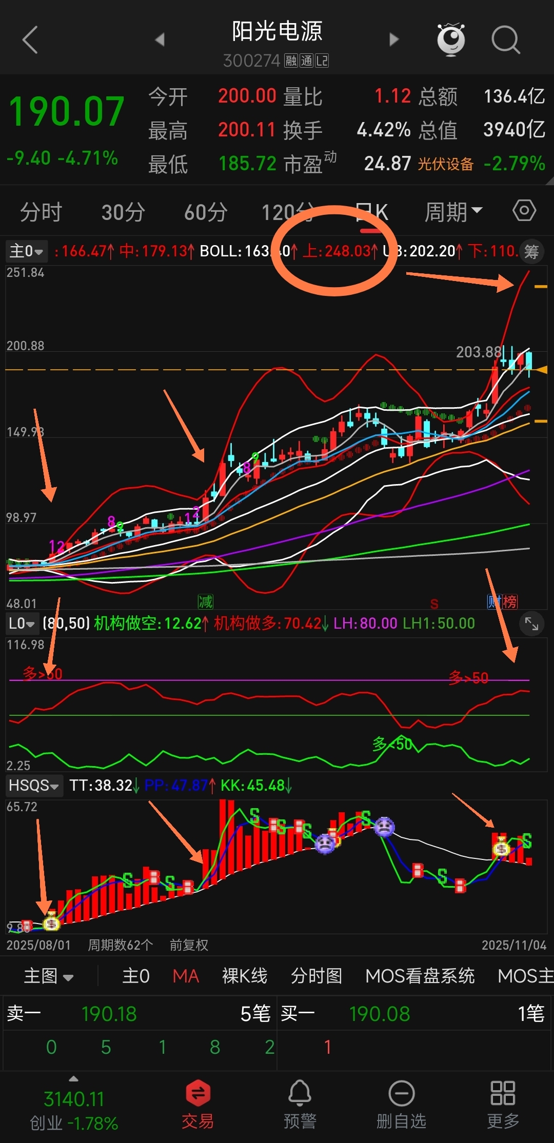 日线开口强势,今天洗了不少人,明天又要大涨了,第一步吃点220,第二步吃掉250