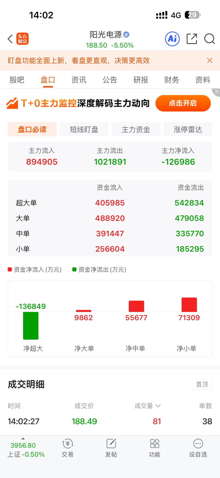 $阳光电源(SZ300274)$ 主力砸,散户接