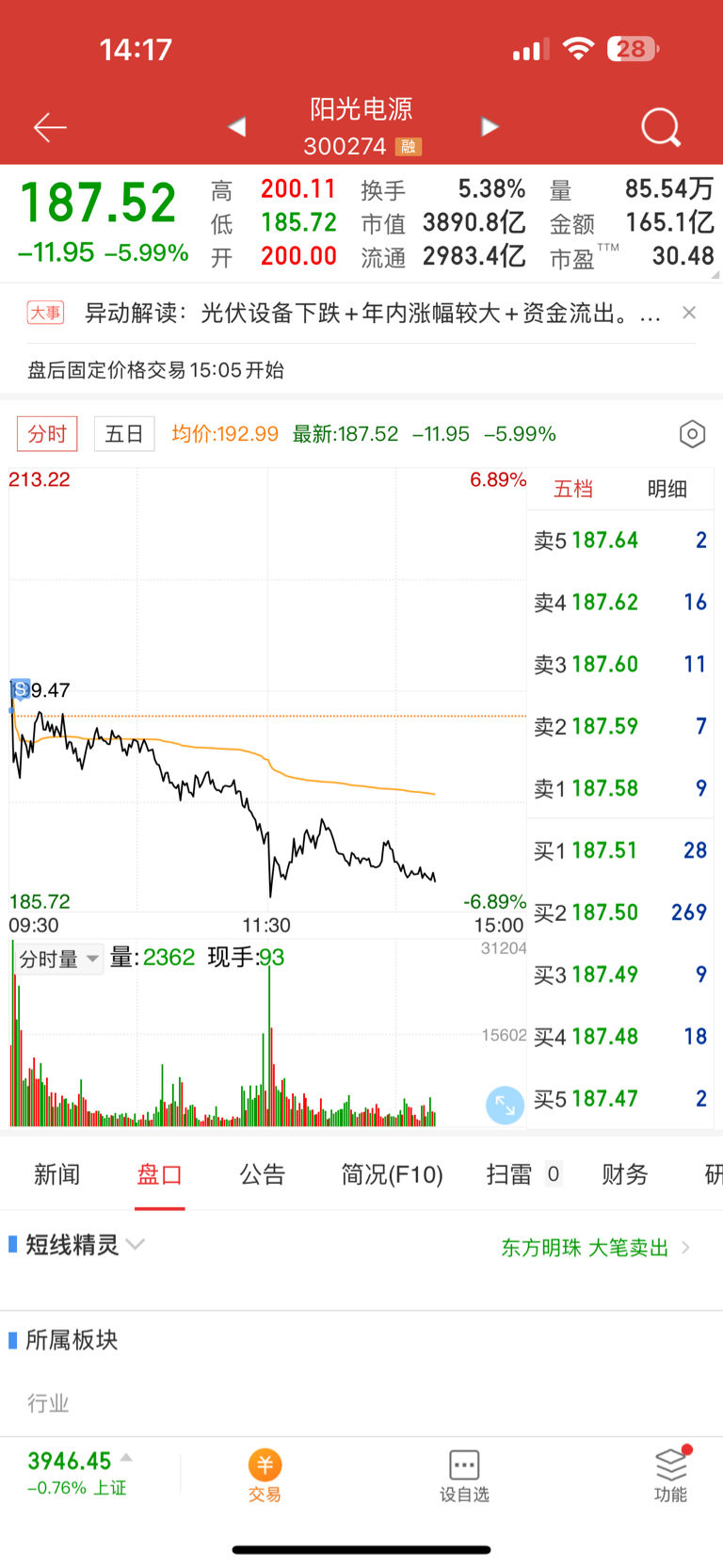 $阳光电源(SZ300274)$ 早上跑的快,今天居然这么坑!