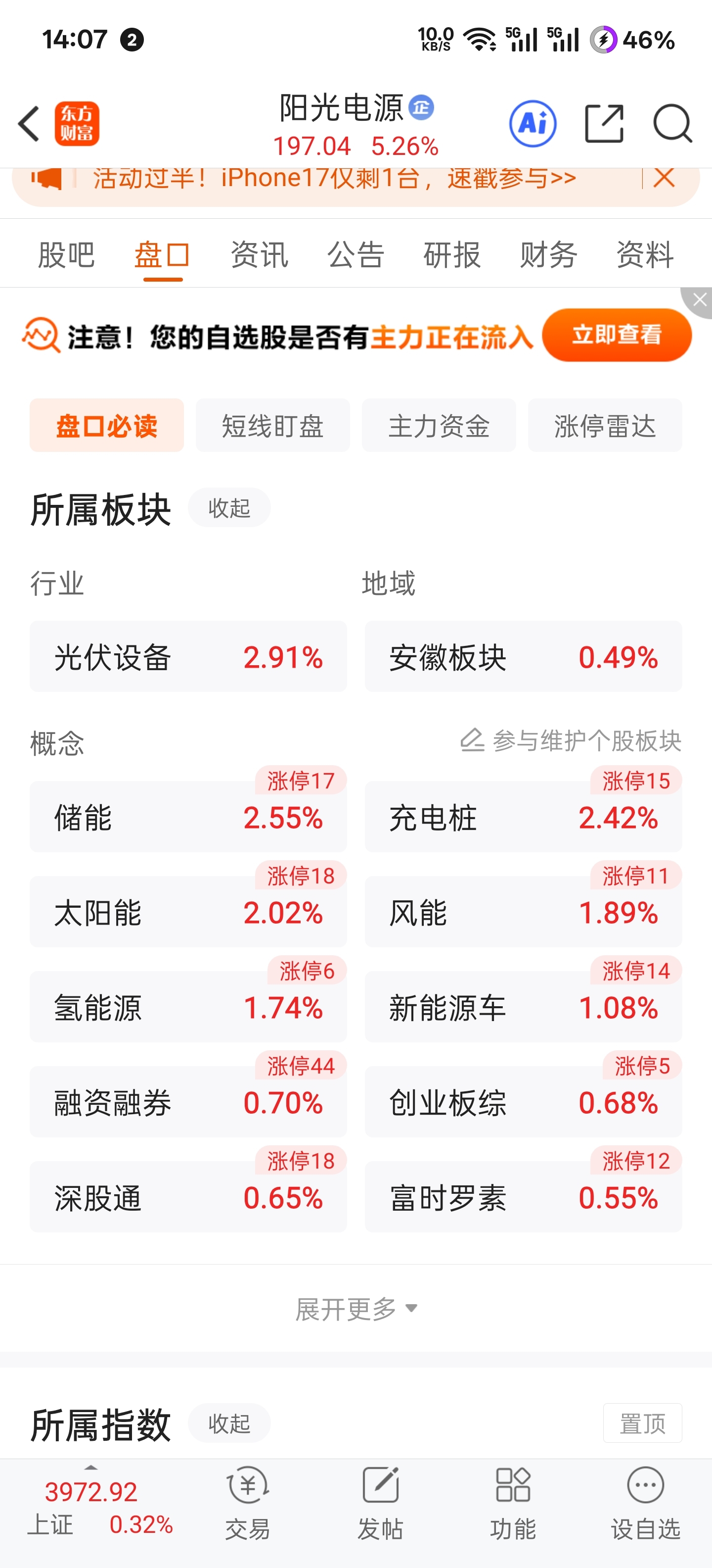 $阳光电源(SZ300274)$ 这么多涨停的,怎么就没有你这个带头大哥