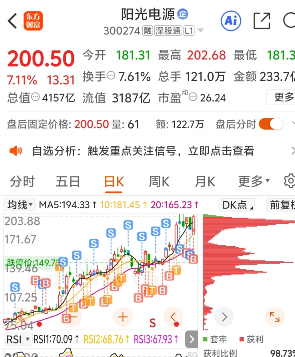$阳光电源(SZ300274)$ 真搞不懂外面看客为什么不敢进?,我做超短线,从8月底到现在盈利翻了近两倍,与它价位有什么关系?只要它涨就进来啃一口,它跌就立马出局,管它什么价呢?
