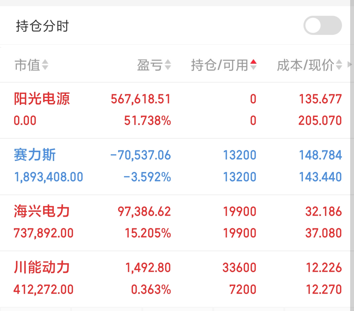 阳光电源全部清了,目前手上就还有海兴电力、川能动力、赛力斯
