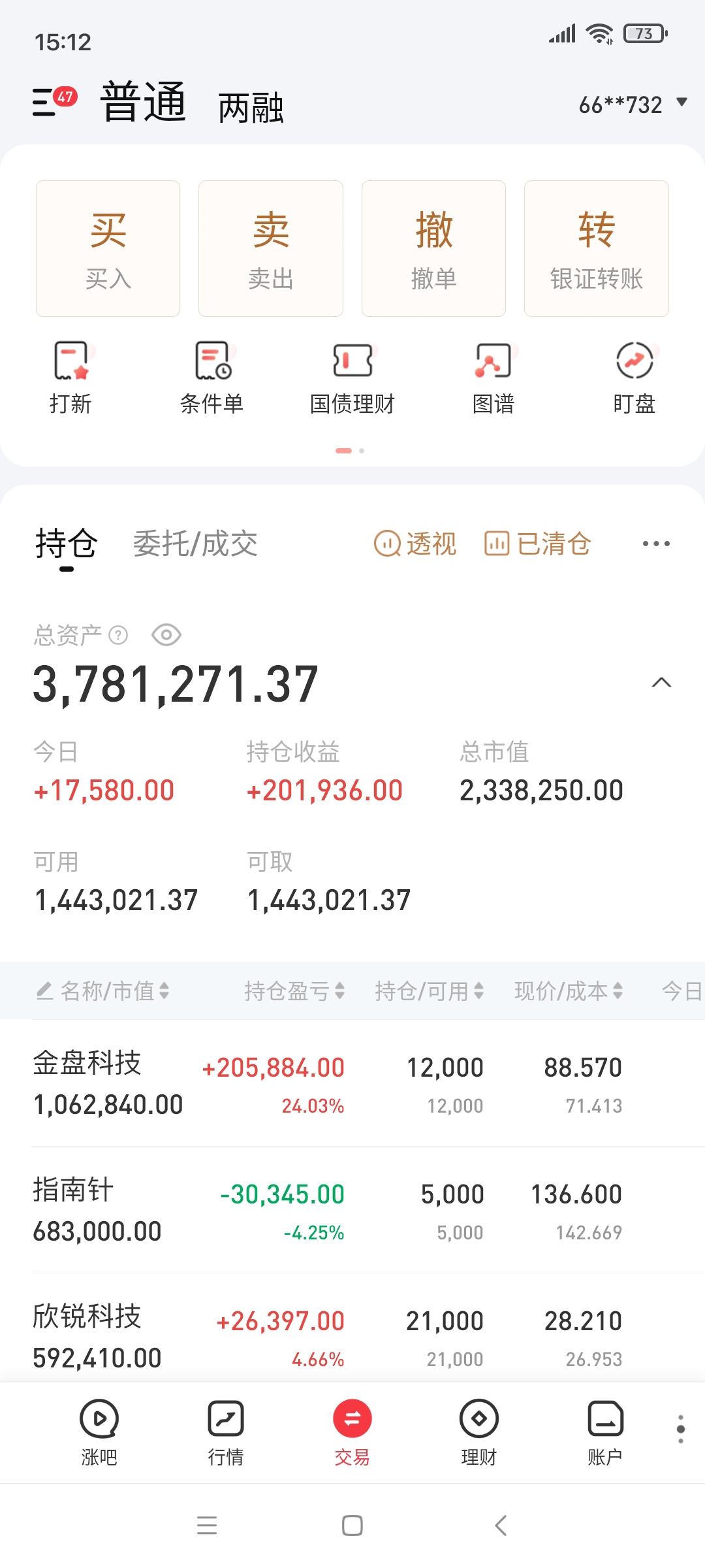持有:金盘科技 指南针 欣锐科技