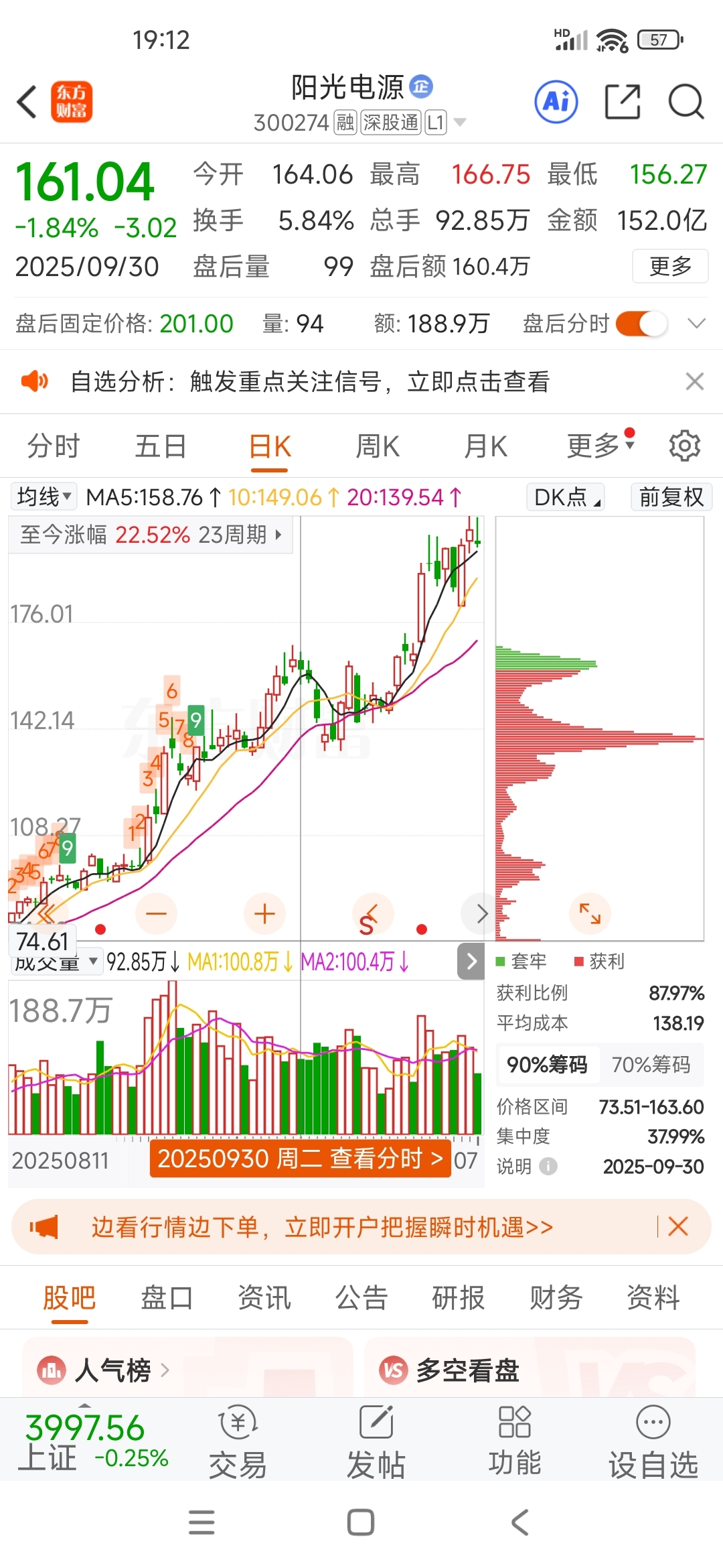 $阳光电源(SZ300274)$ 因为害怕接下来会跟9月30号之后的走势一样,今天清仓了,清完仓就感觉不留底仓,可能就很难买回去了,长期看好