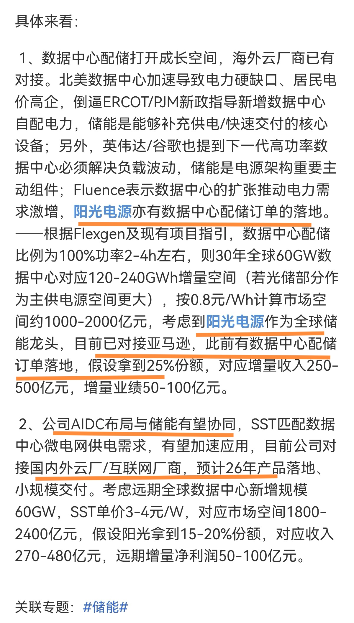 机构纪要:侧面证实阳光电源已对接亚马逊有数据中心储能项目落地