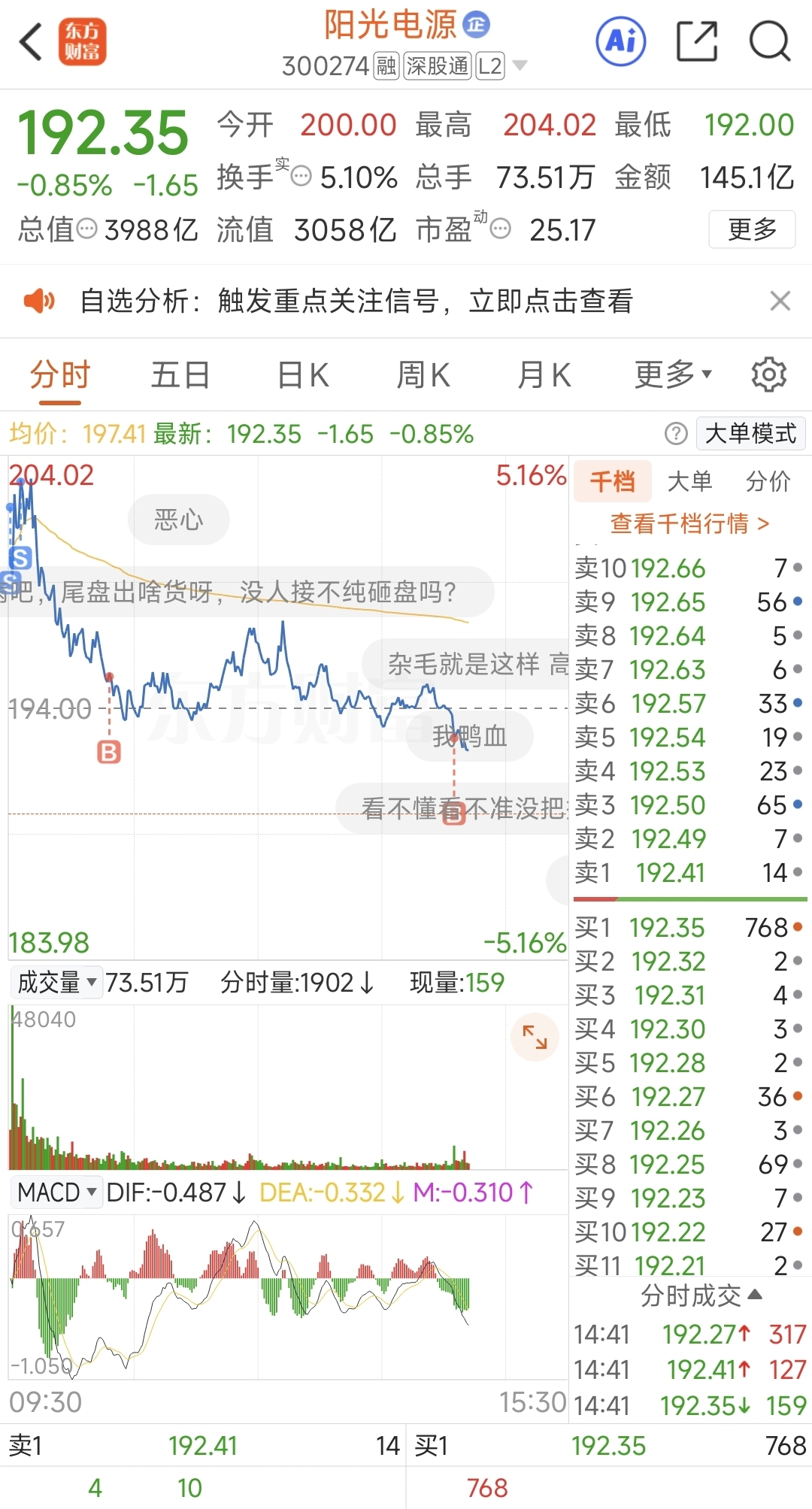 $阳光电源(SZ300274)$ 早晨以为卖飞了