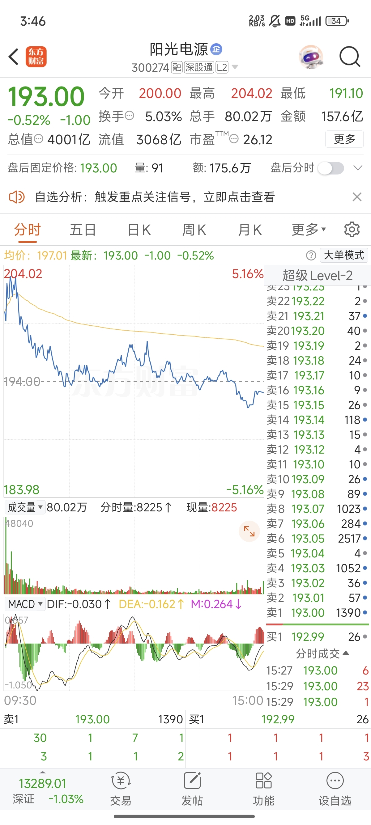 $阳光电源(SZ300274)$ 今天把东财level2开了,发现竞价很有意思,颤抖吧小散!