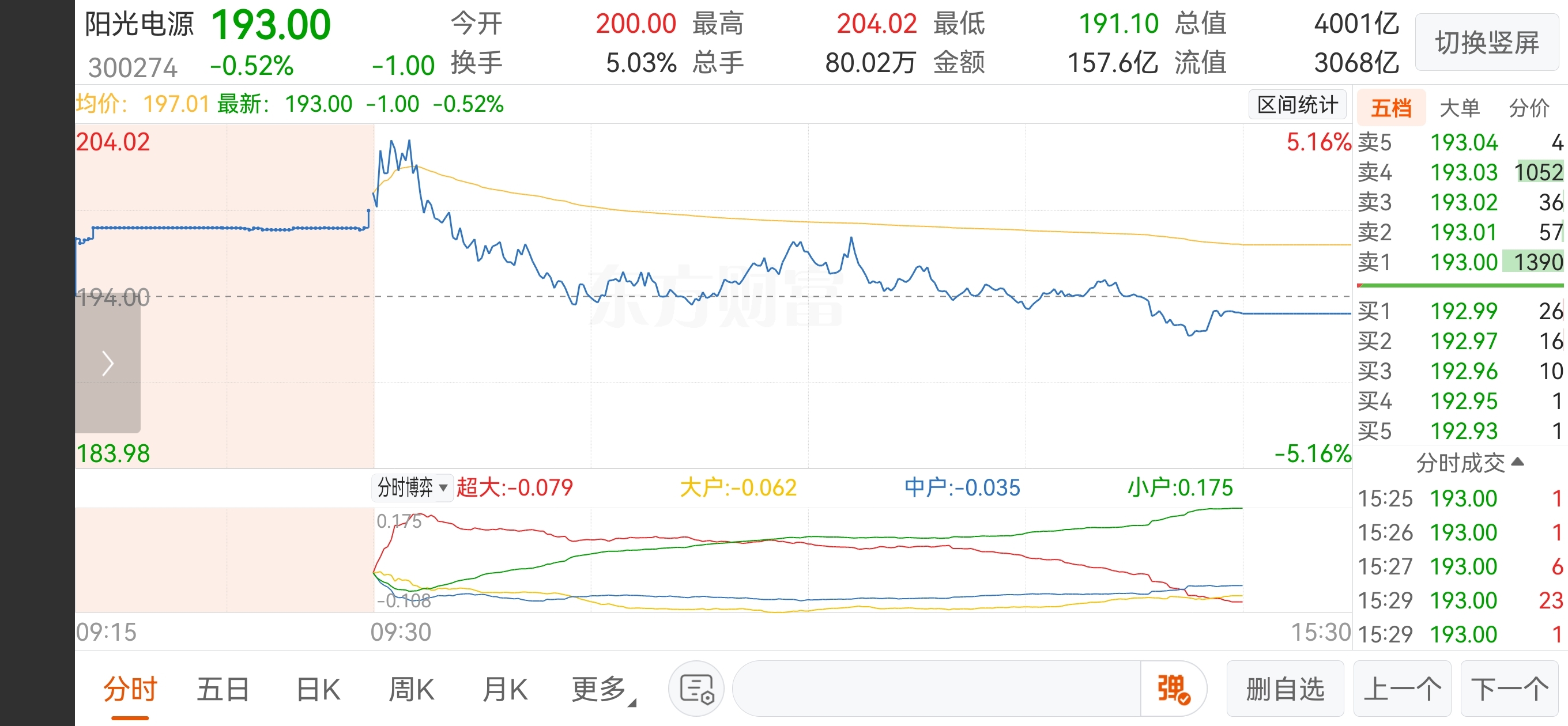 $阳光电源(SZ300274)$ 昨天小单奋勇买入,今天能向上走吗
