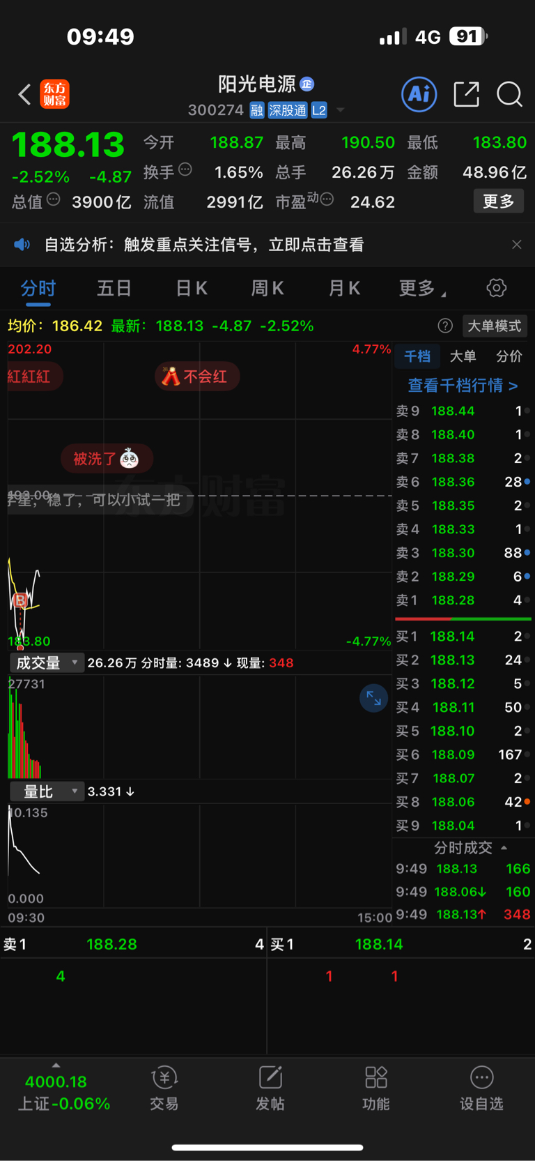 $阳光电源(SZ300274)$ 不知道是不是抄底成功,下午还跌不跌
