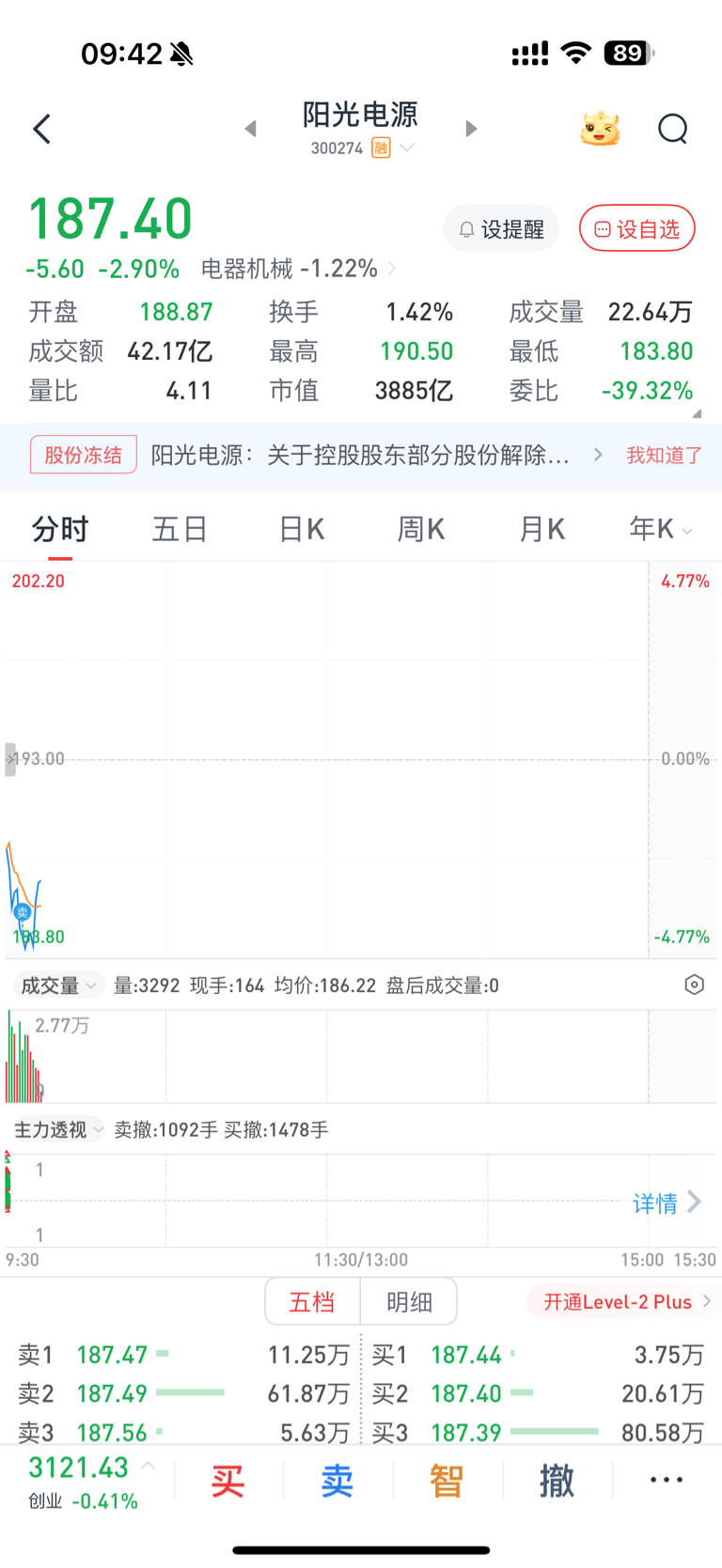 $阳光电源(SZ300274)$ 10个点到了 一个肉就涨受不了