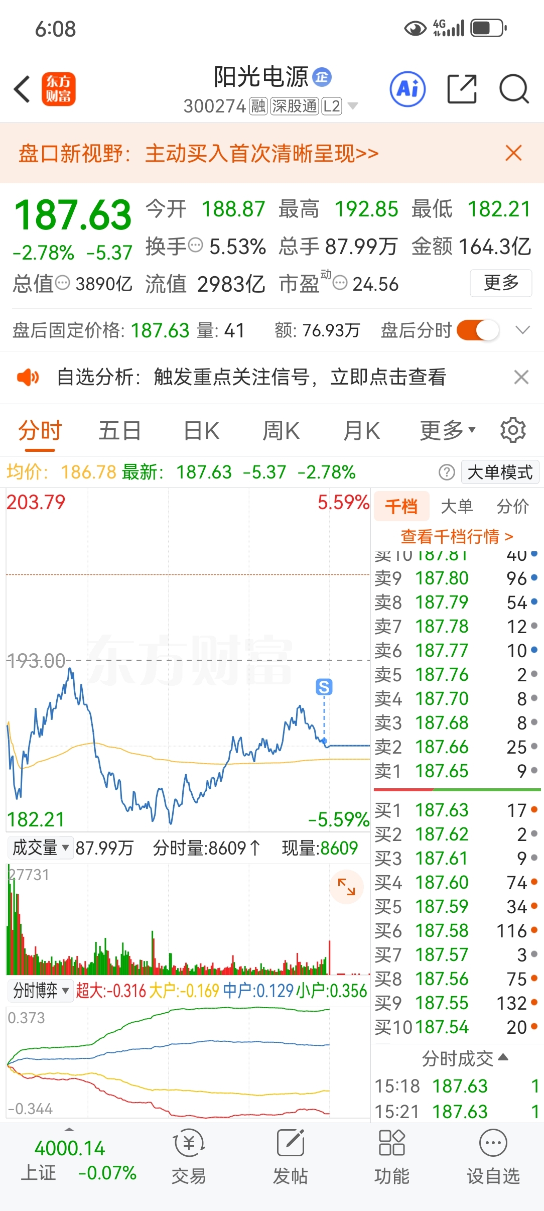 $阳光电源(SZ300274)$ 明天大跌,位破170,我回来抄个底。