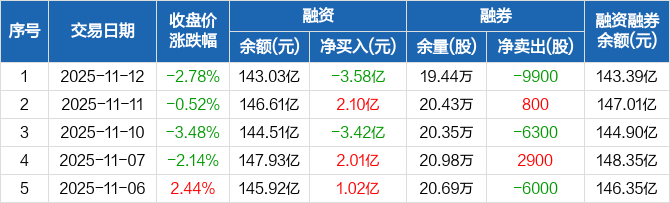 阳光电源:融资净偿还3.58亿元,融资余额143.03亿元(11-12)