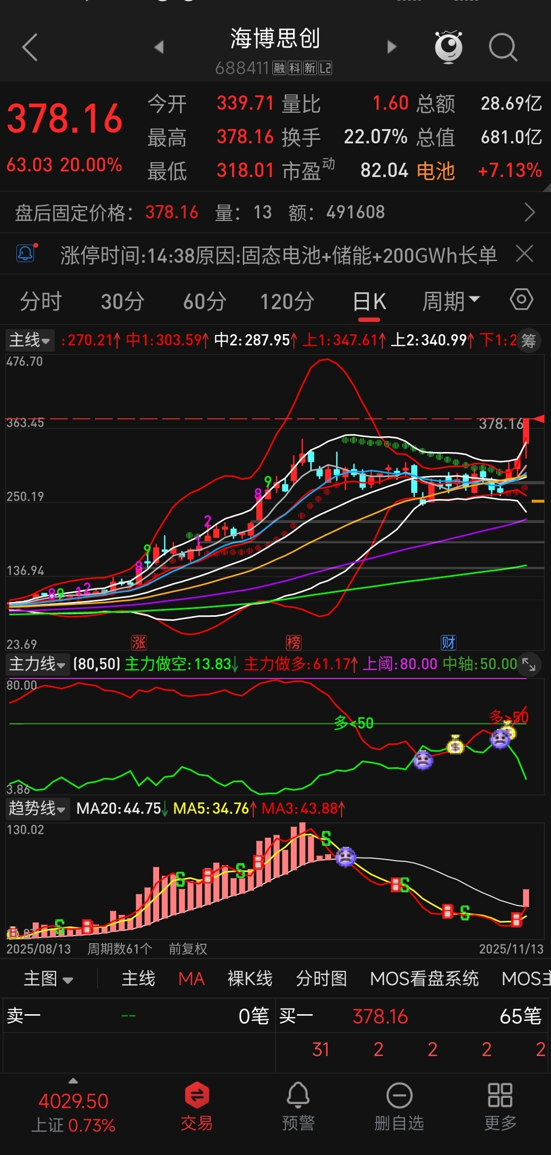 看看阳光电源的主力做多线掉得多快,反而海博思创、上能电气的主力做多线持续走强。