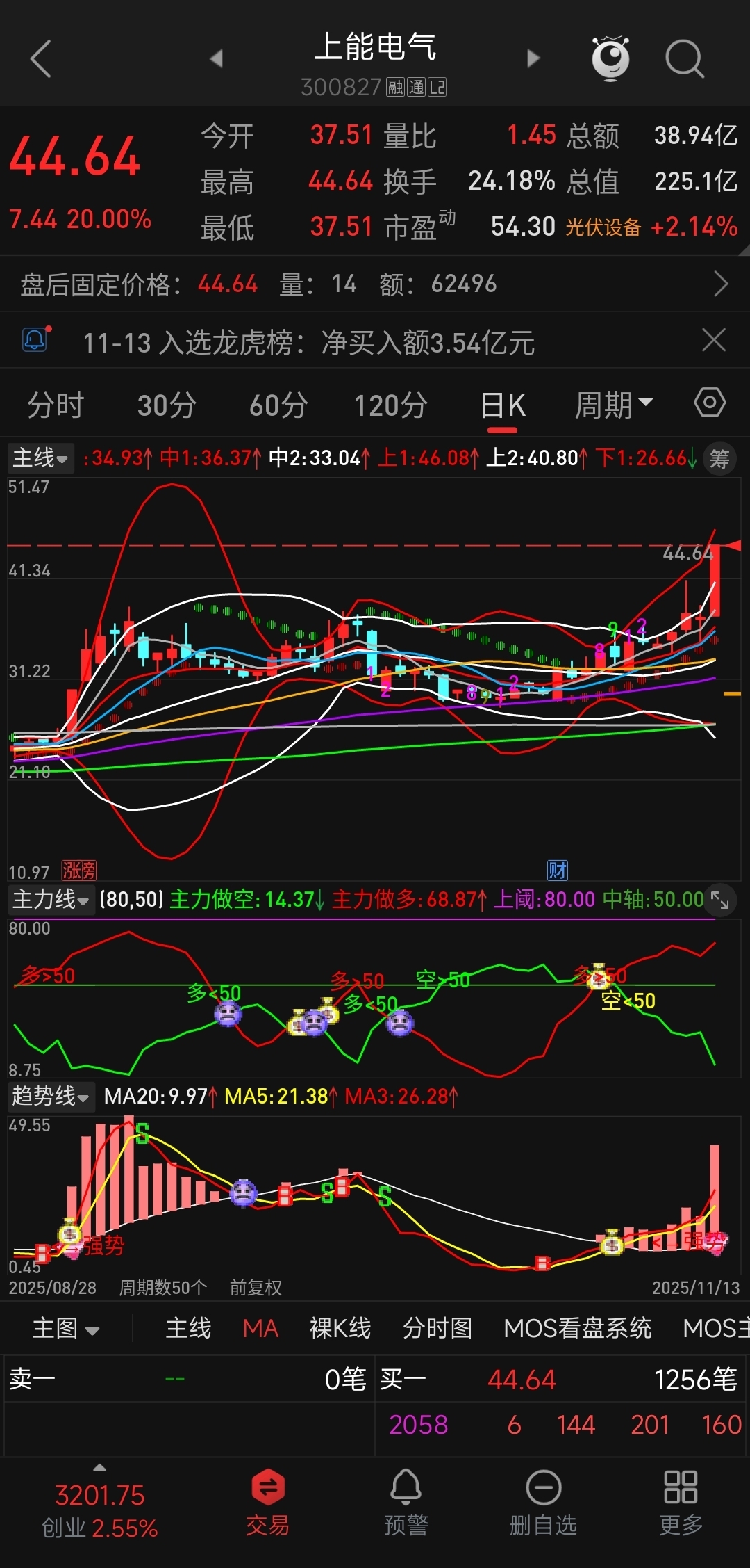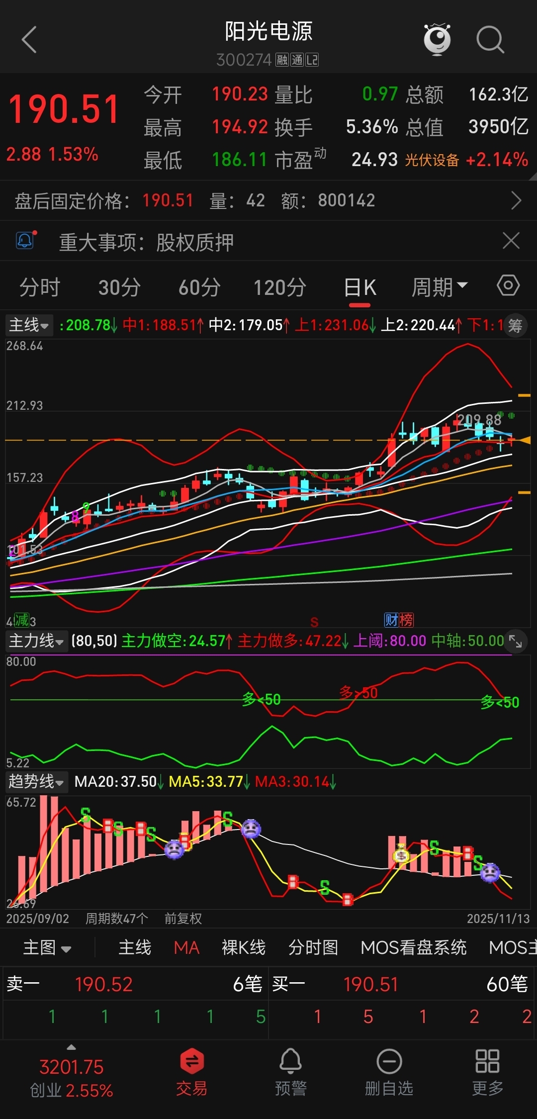 看看阳光电源的主力做多线掉得多快,反而海博思创、上能电气的主力做多线持续走强。主